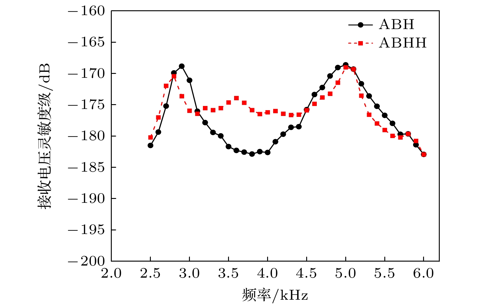 角/(°)1阶 2.95 –167.3 156 2.9 –168.8 120 2阶 5.25 –168.5 99 5.0 –168.6 85 表 3 ABHH水听器的仿真与实测性能对比