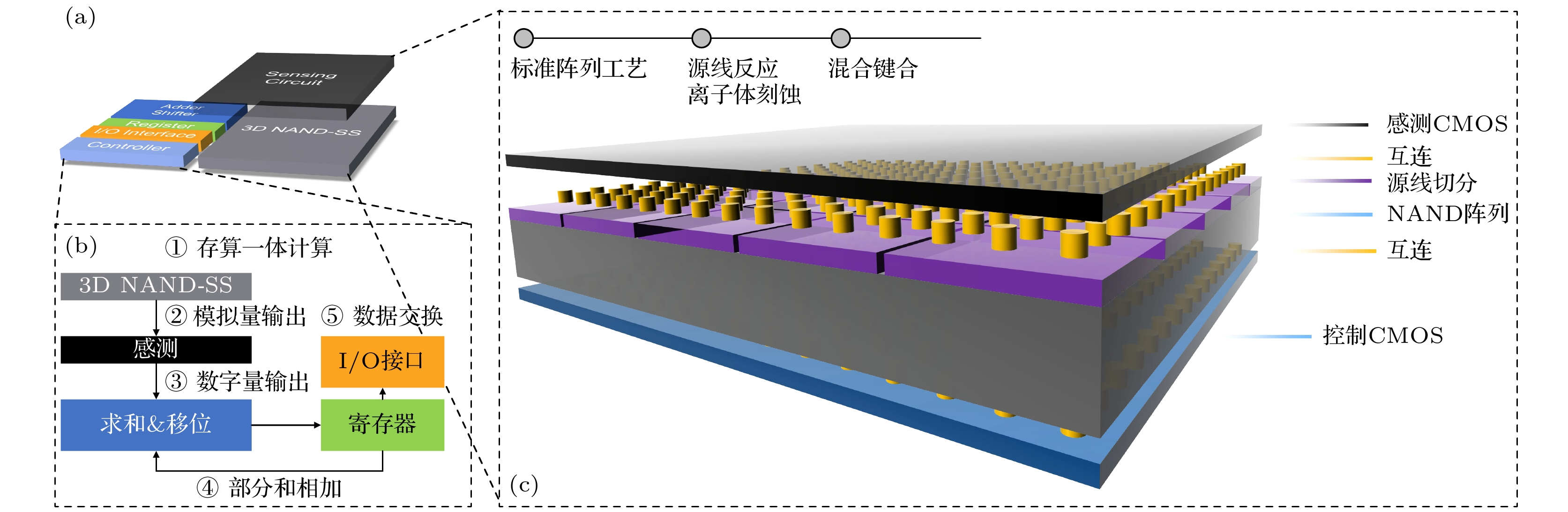 随着ChatGPT等大语言模型的发展, 产业界对硬件的算力、容量和功耗提出了新的需求. 存算一体(compute-in-memory, CIM)技术相较于传统近存计算, 减少了数据搬移, 显著降低功耗. 而在众多存储器中, 3D NAND闪存因其成熟的工艺制造技术和超高容量, 是最有可能实现大模型本地部署的候选方案. 然而, 目前针对3D NAND闪存CIM芯片的研究大多停留在学术研究阶段, 未基于产品级3D NAND闪存芯片进行系统性的CIM架构设计和大模型功能验证. 对此, 本文搭建了基于PyTorch框架的大语言模型仿真器平台来评估系统架构的性能, 并提出了一种基于源线背面切分工艺的通用3D NAND架构. 该架构通过改动3D NAND的源线制造工艺以支持CIM计算, 工艺成本极低, 可供产业界快速迭代, 并完善了相应的映射算法和流水线设计. 最后通过仿真器平台对所提出的架构在电流分布和量化的影响下进行了性能评估, 仿真结果表明所设计的产品级3D NAND芯片可以在GPT-2-124M大模型上做到20 tokens/s的生成速度和5.93 TOPS/W的能效比, 在GPT-2-355M大模型上做到8.5 tokens/s的生成速度和7.17 TOPS/W的能效比.