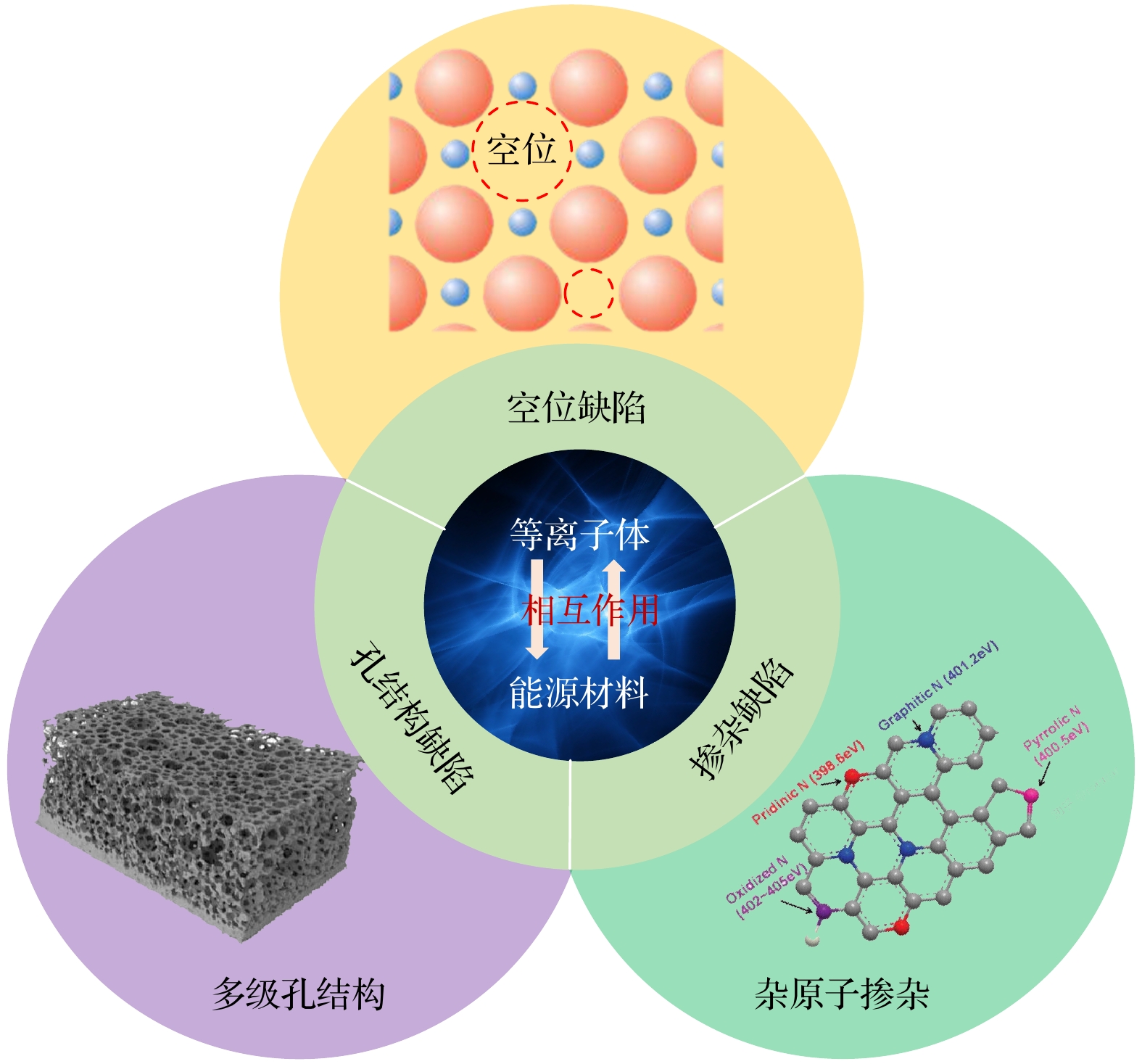 非热等离子体 (non-thermal plasma, NTP) 作为一种在接近室温条件下高效实现材料制备与改性的先进技术, 近年来在能源材料领域备受关注. 由于其电子温度高而整体气体温度低, NTP能够在避免热损伤的前提下, 通过引入空位、杂原子掺杂, 调控孔隙率和表面粗糙程度等多尺度缺陷, 显著改善电极材料的电化学性能. 等离子体-材料表面相互作用是一个复杂的体系, 涉及等离子体与材料之间的相互影响规律, 深入理解该作用机制对实现NTP改性精准调控材料缺陷类型、密度、空间分布至关重要. 本综述系统总结了NTP在能源材料刻蚀和掺杂领域的应用, 重点阐述了缺陷的生成及其对等离子体与材料表面相互作用中的影响. 最后, 分析了NTP技术规模化应用过程中面临的主要挑战并对其未来发展进行了展望.