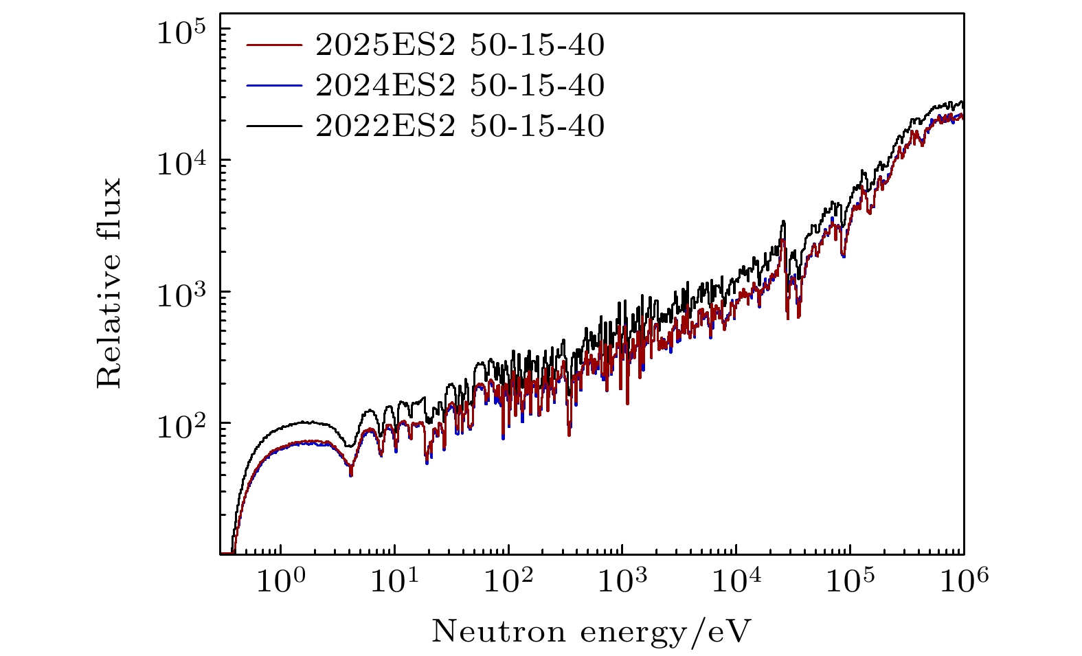 • 中国散裂中子源(CSNS)反角白光中子实验装置(Back-n)提供的中子束流覆盖0.3 eV—300 MeV能量范围, 是我国开展中子核反应研究的重要研究平台. Back-n实验厅二飞行距离达到76 m, 具有良好的中子能量分辨率, 为涉及天体核合成、重要核数据的中子俘获反应截面测量等实验研究提供了优异的束流条件. 中子俘获反应截面测量主要利用中低能(1 MeV以内)的中子开展研究, 实验结果精度十分依赖中低能区中子能谱. 受益于CSNS的稳定运行, Back-n的中子能谱在较长时期内十分稳定, 但也会随着CSNS的靶体、束窗等部件的结构调整而演变. 本工作利用Back-n实验厅二的6Li-Si束流监测器开展了不同时期的50-15-40准直器设置下中低能区中子能谱测量. 得到了在2024年更换质子束窗和2025年CSNS调整靶体结构前后, Back-n实验厅二0.3 eV—1 MeV中子能量区间的相对能谱(100 bpd), 并将解谱起点降低至10 eV, 不确定度为1%—6.8%. 结果表明, 2024年调整质子束窗降低了eV至keV能区的中子通量并显著改变了能谱形状; 2025年靶体调整略增加了eV至keV能区的中子通量并略改变能谱形状. 此外, 通过对两种不同常用的准直器设置下的中子能谱进行分析, 也比较了其能谱形状差异. 本工作为在Back-n实验厅二开展的中子俘获反应截面测量等研究提供了关键数据支撑. 本文数据集可在https://doi.org/10.57760/sciencedb.j00213.00214中访问获取.