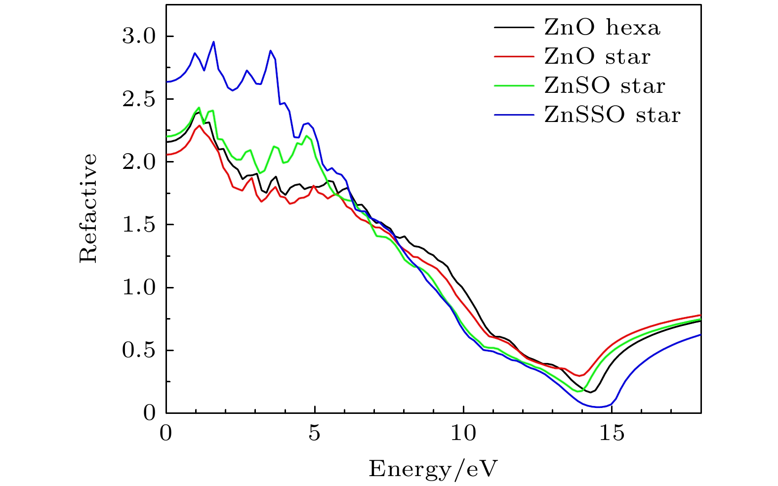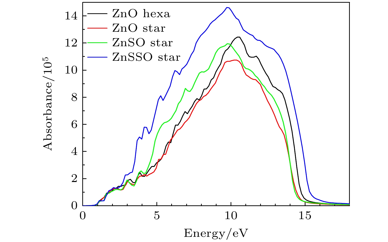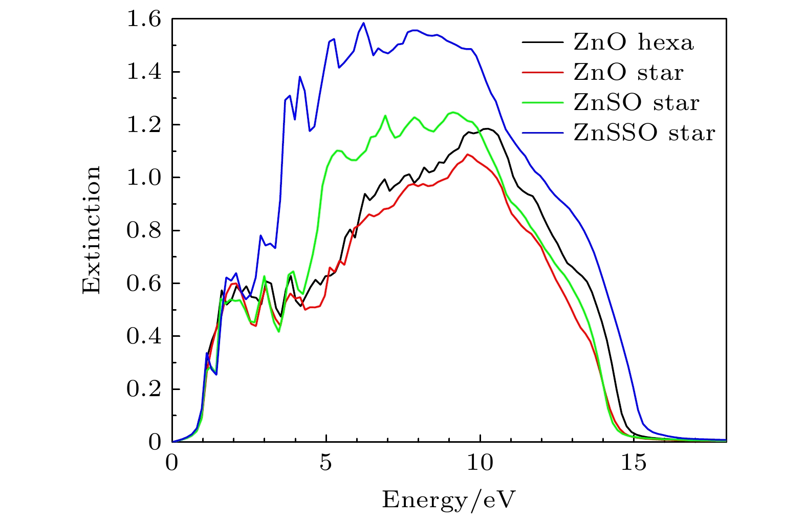 表 1 星形氧化锌纳米线(ZnO Star)、12个硫掺杂的六角星形纳米线(ZnSO)以及24个硫掺杂的六角星形纳米线结构(ZnSSO)的结构参数