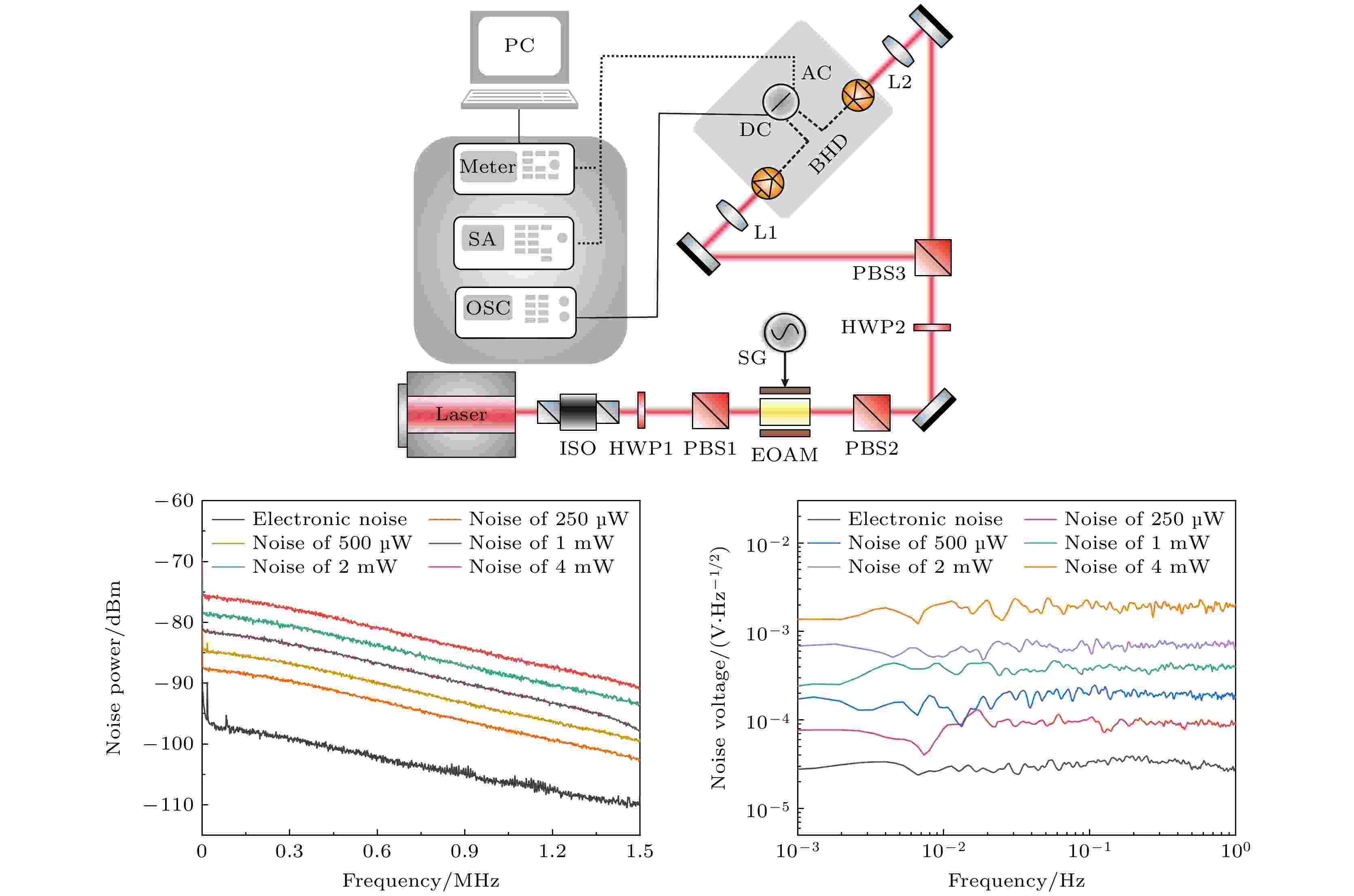 平衡光电探测器作为一种检测量子态噪声起伏通用技术的核心关键器件, 其性能参数在近直流的宽频带范围内(mHz—MHz)常受限于电子学噪声与电学增益的相互制约. 针对1 mHz—1 Hz极低频段, 为满足未来量子增强引力波探测计划中对量子压缩光源探测和评估等方面的需求, 本研究基于一种可调节阻抗匹配网络与两级差分放大的设计架构, 使用差分微调电路与可调偏置电压协同补偿方案, 优化光电二极管的非线性响应补偿机制, 在分析频段500 Hz处实现共模抑制比>75 dB. 实验结果表明, 在小于1 Hz的频段内, 探测器的电子学噪声优于3.5 × 10–5 V/Hz1/2, 满足空间引力波探测计划对于激光强度噪声的要求(1 × 10–4 V/Hz1/2); 同时当入射的本底探测光功率为4 mW时, 本平衡光电探测器可实现增益20 dB@1 mHz—1 MHz, 满足高指标压缩光源的高效探测需求, 为下一代空间引力波探测以及极低频段压缩态光场的探测提供了关键器件的解决方案.