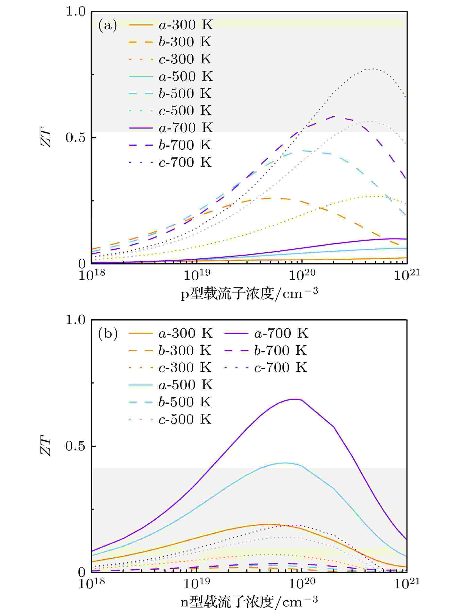 混合阴离子硫卤化物凭借其独特的晶格动力学和可调电子结构, 在热电与光电材料领域备受关注. 本文基于密度泛函理论的第一性原理计算, 结合玻尔兹曼输运方程、声子重整化模型, 研究了AgBiSCl2的光电、热电性能. 结果表明, AgBiSCl2为直接带隙半导体且带隙为1.72 eV, 紫外区光吸收系数达到1 × 106 cm–1, 3 μm厚度下光谱极限最大效率为28.06%. AgBiSCl2中Ag原子离域引起的rattling振动引发强非谐声子散射, 导致极低的晶格热导率, 在300 K时平均热导率中κp和κc分别为0.246 W/mK 和0.132 W/mK. 700 K 时p型和 n 型最大ZT分别为0.77和0.69. 由此表明AgBiSCl2在高效热电能量转换与紫外光电探测器领域具有重要应用潜力, 为设计多功能材料提供了理论参考.
