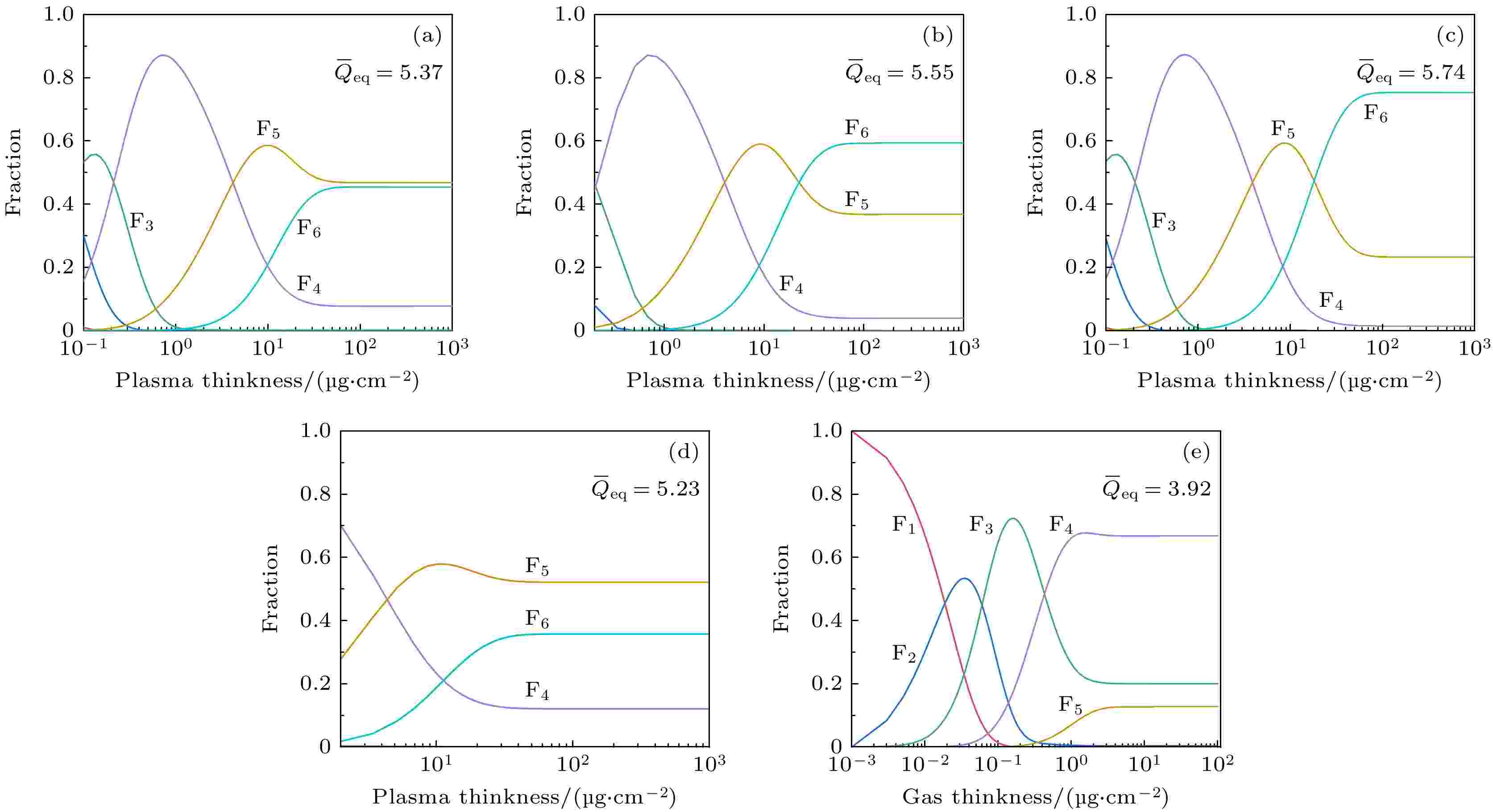 本文基于截面模型系统研究了碳离子与氢等离子体相互作用的电荷态演化行为. 首先探究了在碳离子入射能为$1{\text{ keV/u—}}100{\text{ MeV/u}}$、氢等离子体的电子温度为$k{T_{\text{e}}} = 1{\text{—}}1000{\text{ eV}}$范围内引入“shift”麦克斯韦速率分布对双电子复合速率系数影响的规律, 首次给出该体系下的速率系数数据. 在此基础上具体求解了在炮弹碳离子的能量为$0.5{\text{ MeV/u}}$、等离子体自由电子温度为$ k{T}_{\text{e}}=3$和$8\text{ eV} $、电子密度为${N_{\text{e}}} = {10^{18}}{\text{—}}{10^{20}}{\text{ cm}^{- 3}}$的情况下包含各种电离及复合过程的平衡速率方程, 给出了碳离子穿过氢等离子体的非平衡和平衡电荷态丰度随等离子体厚度的演化关系, 揭示了等离子体状态(温度、密度), 炮弹离子能量及初始电荷态对炮弹离子电荷态演化的调控机制. 进一步, 通过对比碳离子在氢等离子体与中性气体(氢气)中的动力学行为差异, 阐明了等离子体环境对离子电荷交换的独特影响. 本研究将对高能量密度物理领域中离子与等离子体相互作用的动力学演化及能量输运特性的研究具有重要参考作用.