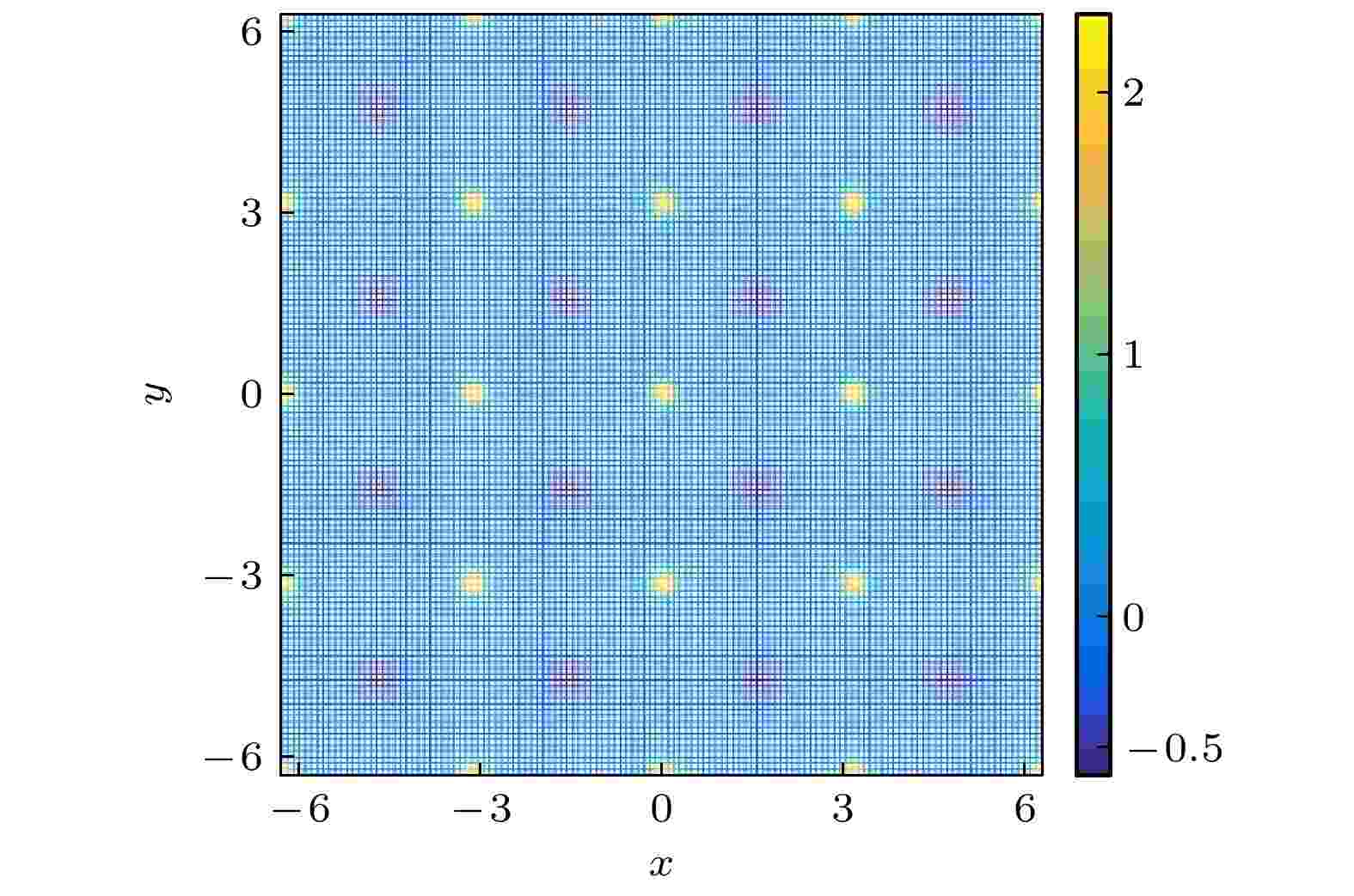 采用虚时演化法求解拉曼光晶格的平均场Gross-Pitaevskii方程, 基于其基态波函数, 研究该模型中超冷原子的拓扑性质. 研究发现光晶格深度和原子间相互作用强度的竞争导致了丰富的基态结构相图. 当只有标量光晶格存在时, 超冷原子在实空间没有涡旋产生, 在动量空间表现为拓扑平庸的密度峰; 当只有拉曼光晶格存在时, 超冷原子在实空间出现大小相同的涡旋; 当标量光晶格和拉曼光晶格共同作用时, 超冷原子在实空间出现大涡旋和小涡旋, 正反涡旋交错排列, 在动量空间出现具有拓扑非平庸相位的衍射峰, 在自旋表象中产生半量子化的斯格明子晶格.