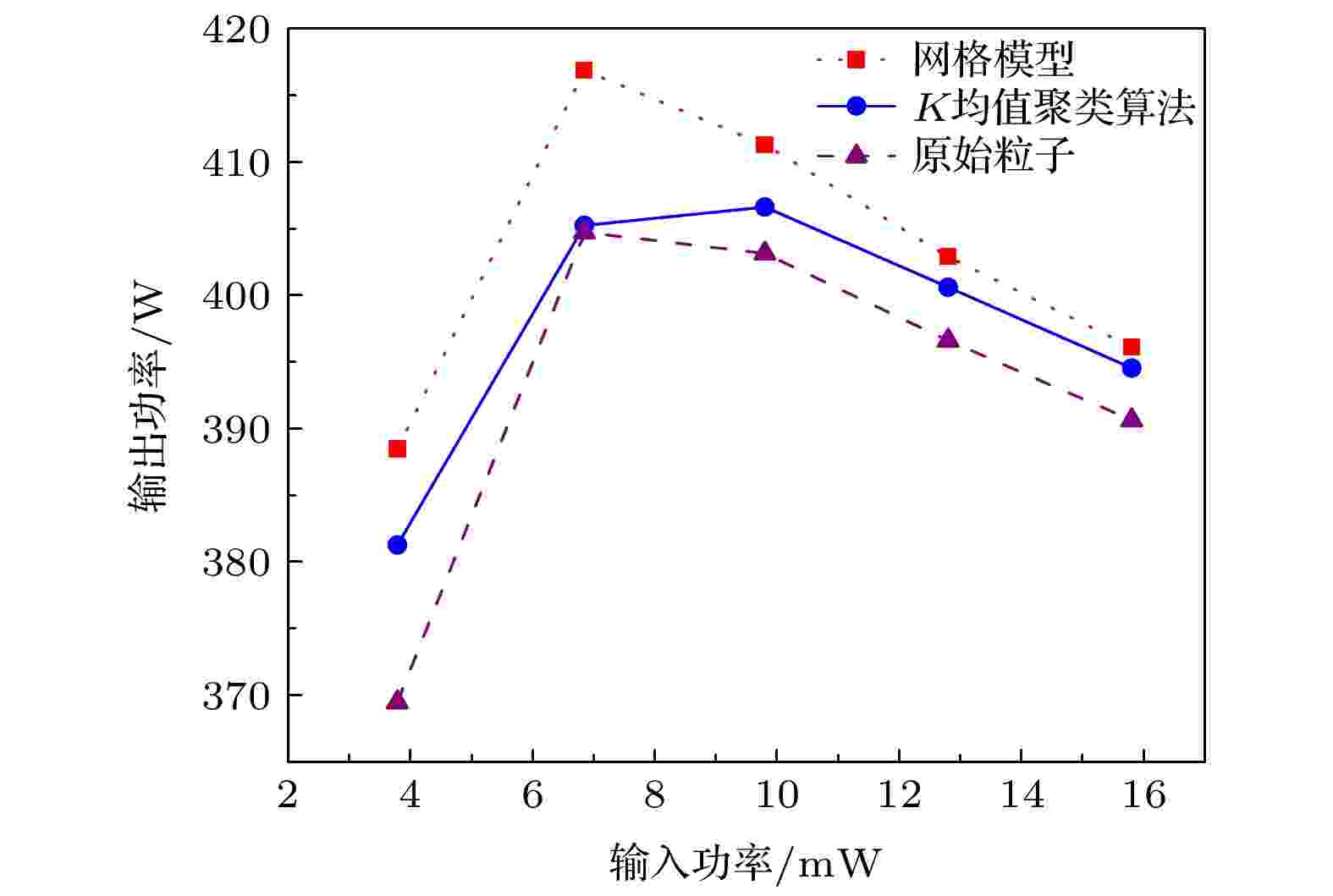 为了提高行波管的稳定性和可靠性, 电子注的优化与设计成为真空电子器件中的关键部分, 层流性是评价电子注质量的关键参数. 提出使用K均值聚类算法将电子枪注腰处粒子简化为宏粒子的方法. 将该宏粒子作为行波管互作用区的粒子源进行注波互作用仿真, 使得仿真时间由5.53 h减少为0.65 h, 提高了仿真效率. 通过对某型号行波管的电子枪进行阴极发散角度和阴阳极间距离的调整. 仿真结果表明: 发散角度在0°—1°范围调节时, 发散角度越大, 径向均方根发射度数值也越大, 电子注层流性就越差, 行波管输出功率下降; 阴阳极间距离在0.8—1.6 mm范围内调节时, 径向均方根发射度由2.51 mm·mrad下降为2.22 mm·mrad时, 电子注的层流性得到改善, 空间行波管输出功率由328.34 W上升为414.10 W. 因此, 采用K均值聚类算法的粒子简化模型, 提升了注波互作用仿真效率, 依据电子注层流性对行波管性能的影响可以对电子枪结构参数优化.