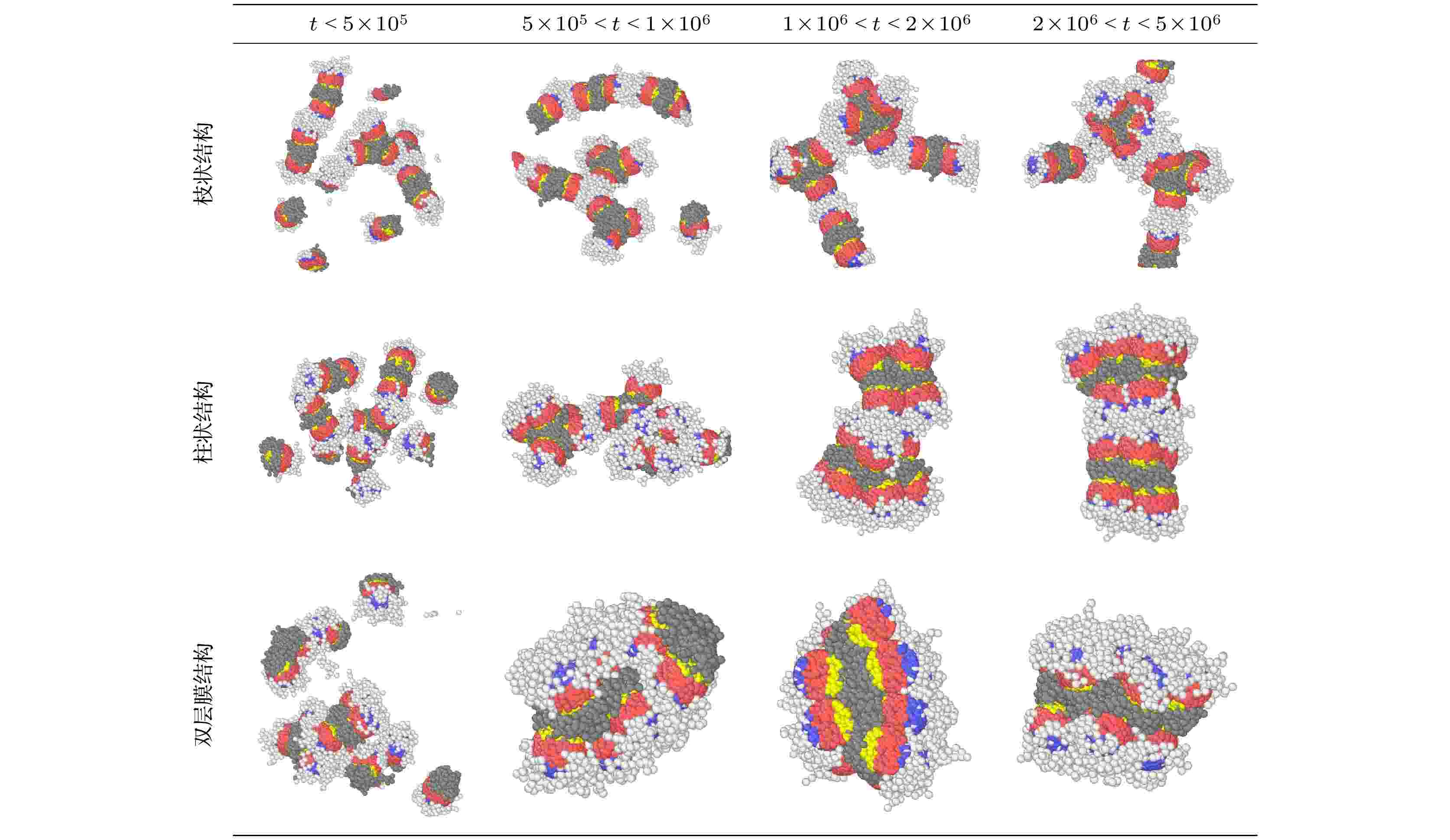 聚合物接枝纳米粒子的自组装在功能材料领域的应用越来越广泛. 然而, 目前对于不同自组装形貌结构的动态转变路径的分析仍存在不足, 这将导致在实验和工业生产中无法实现进一步的精确调节和定向设计. 本文通过构建聚合物接枝斑块化三分纳米颗粒的粗粒度模型, 采用耗散粒子动力学模拟方法, 研究了斑块性质、接枝链的长度、比例以及接枝密度等因素对聚合物接枝柔性斑块化纳米粒子自组装行为和结构的影响. 本文系统地探讨了这些因素对柔性斑块化纳米粒子自组装结构转变的影响和调控机制, 得到了枝状结构、柱状结构、双层膜结构等多种结构. 研究中所获得的柔性斑块化纳米粒子的自组装结构(例如双层膜结构)为新型药物载体的设计提供了潜在的应用基础. 通过精确调控体系的特定结构特征, 能够实现药物的高效包载以及靶向递送功能, 从而显著提升药物的生物利用度和治疗效果.