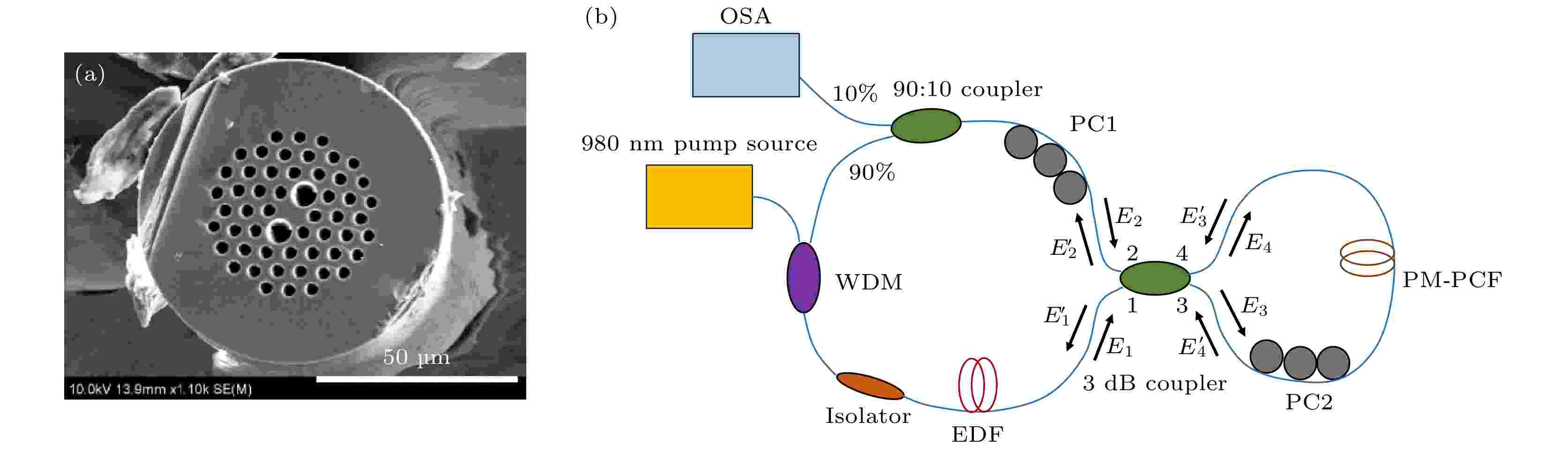 基于保偏光子晶体光纤提出并构建了一种掺铒光纤激光扭转传感器. 该传感器将基于保偏光子晶体光纤的Sagnac干涉仪引入掺铒光纤环形腔中作滤波器和扭转传感器件, 利用光纤激光器线宽窄、信噪比高的优势, 成功实现了高分辨率的光纤扭转传感器. 实验系统研究了激光器的输出特性及扭转响应特性. 研究结果表明, 该扭转传感器可以实现的最大线性测量范围可达480° (31.02 rad/m), 最大扭转传感灵敏度为0.032 nm/(°) (0.5 nm/(rad/m)), 分辨率高达0.681° (0.06 rad/m). 同时, 在20—95 ℃温度变化范围内, 该传感器随温度的变化量仅为4×10–3 nm/℃, 温度交叉敏感带来的扭转角度的测量误差仅为0.16 (°)/℃. 其温度稳定性和温度对扭转角度测量造成的误差分别为现有报道的2/73和40/333. 本文提出的光纤激光扭转传感器具有线性响应范围宽、分辨率高、温度稳定性好等显著优势, 在航空航天、医疗微创手术、机械结构形变感知等领域具有巨大的应用潜力.