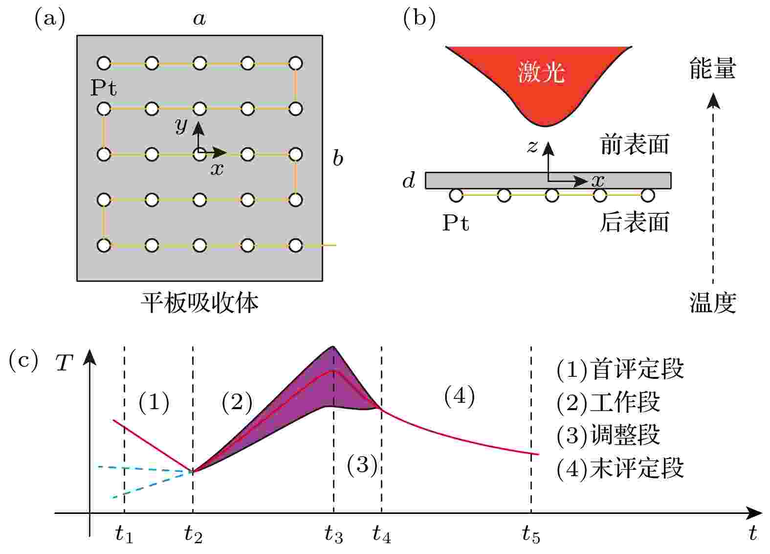强激光到靶总能量测量对激光系统性能评价十分重要. 然而, 到靶光斑具有功率密度高、时空分布不均匀及光斑尺寸大等特点, 给总能量准确测量带来极大挑战. 瞄准大面积光斑总能量高精度测量需求, 本文发展了平板量热技术. 首先, 开展了激光加热平板物理过程研究, 得到了温度场变化解析解, 并基于此发现, 均匀排布的阵列温度传感器可显著缩短调整段时间; 然后, 针对传统能量反演算法中需要预热吸收体和可能受非均匀温度影响的问题, 提出了改进方法; 最后, 研制了平板测量装置, 开展了激光标定实验, 得到了系统的重复性2.7%和线性度0.3%, 合成标准不确定度为4%. 本文研究为平板测量技术在到靶总能量测量中的应用奠定了理论基础, 对装置的优化设计、好用易用性提升、能量高精度反演具有重要参考价值.