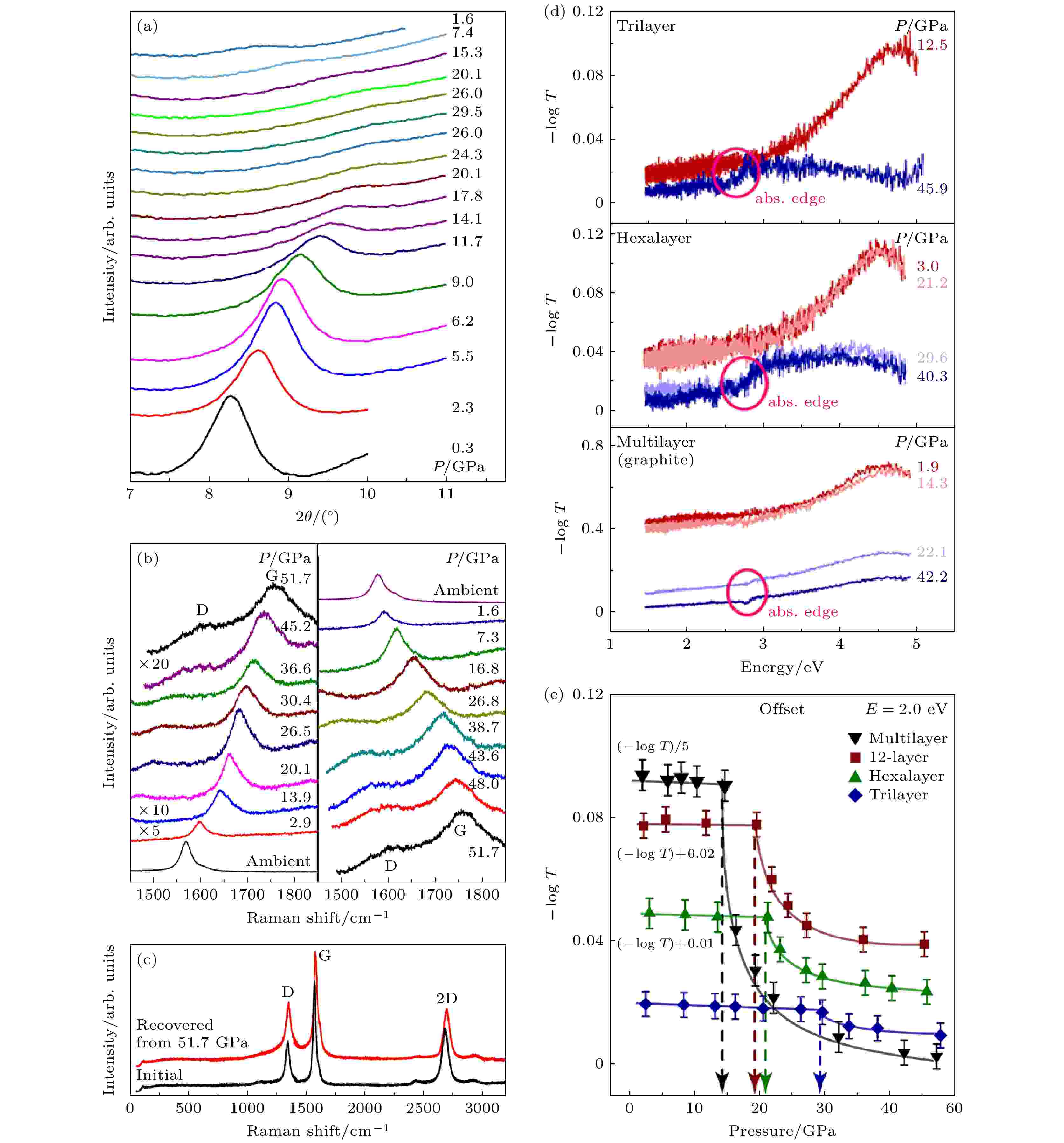 二维材料因其优异的光电性能在基础科学探索与光电子学、能源存储和转换器件等未来技术应用中展现出巨大的潜力, 成为凝聚态物理和材料科学领域的前沿热点. 二维材料独特的层状结构使其物理性能极易受外场的影响. 高压技术作为一种高效、连续且清洁的调控手段, 可以通过压缩原子间距、增强层间耦合, 甚至诱导结构相变, 进而实现对二维材料结构的精准调控以及光电性能的优化提升. 本文以石墨烯、过渡金属二硫族化合物、二维金属卤化物钙钛矿等为例, 结合金刚石对顶砧高压装置以及原位高压表征技术, 重点探讨了它们在高压下的结构演化规律与光电性能调控机制, 并指出了这一新兴研究领域所面临的挑战和机遇, 以期为新型高性能功能材料的开发和实际应用有所启发.