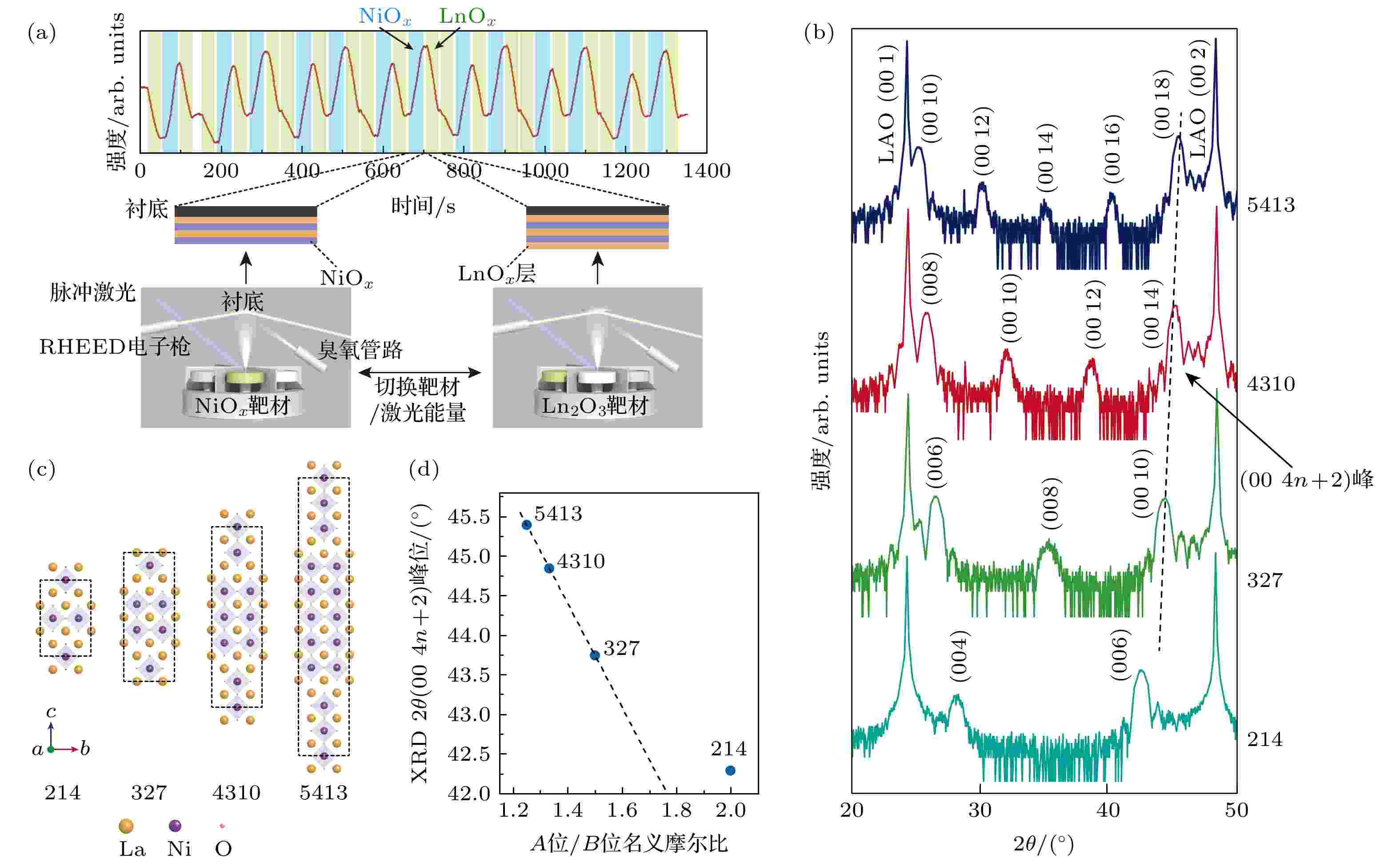 常压镍基高温超导电性的发现, 为深入地探索镍基超导机理带来了新平台. 然而, Ruddlesden-Popper相镍氧化物在热力学上处于亚稳态, 对其结构和氧含量的精准控制极具挑战. 本文介绍了利用强氧化原子逐层外延生长技术在LaAlO3和SrLaAlO4衬底上制备单相、高质量的Ln3Ni2O7 (Ln为镧系元素)薄膜的系统方法. 其中, (La, Pr, Sm)3Ni2O7/SrLaAlO4超导薄膜的超导起始转变温度(Tc,onset)达到50 K. 阳离子化学计量偏差、逐层原子覆盖度、薄膜与衬底界面重构和氧化条件是影响薄膜Ln3Ni2O7晶体质量和超导性能的4个重要因素: 1)精准的阳离子化学计量控制会抑制晶体杂相的产生; 2)原子逐层的完整覆盖和3)优化的界面重构可以减少薄膜的堆垛层错; 4)准确的氧含量调控则是实现超导单转变和高Tc,onset的关键. 这些发现对各类氧化物高温超导薄膜的逐层外延生长具有借鉴意义.