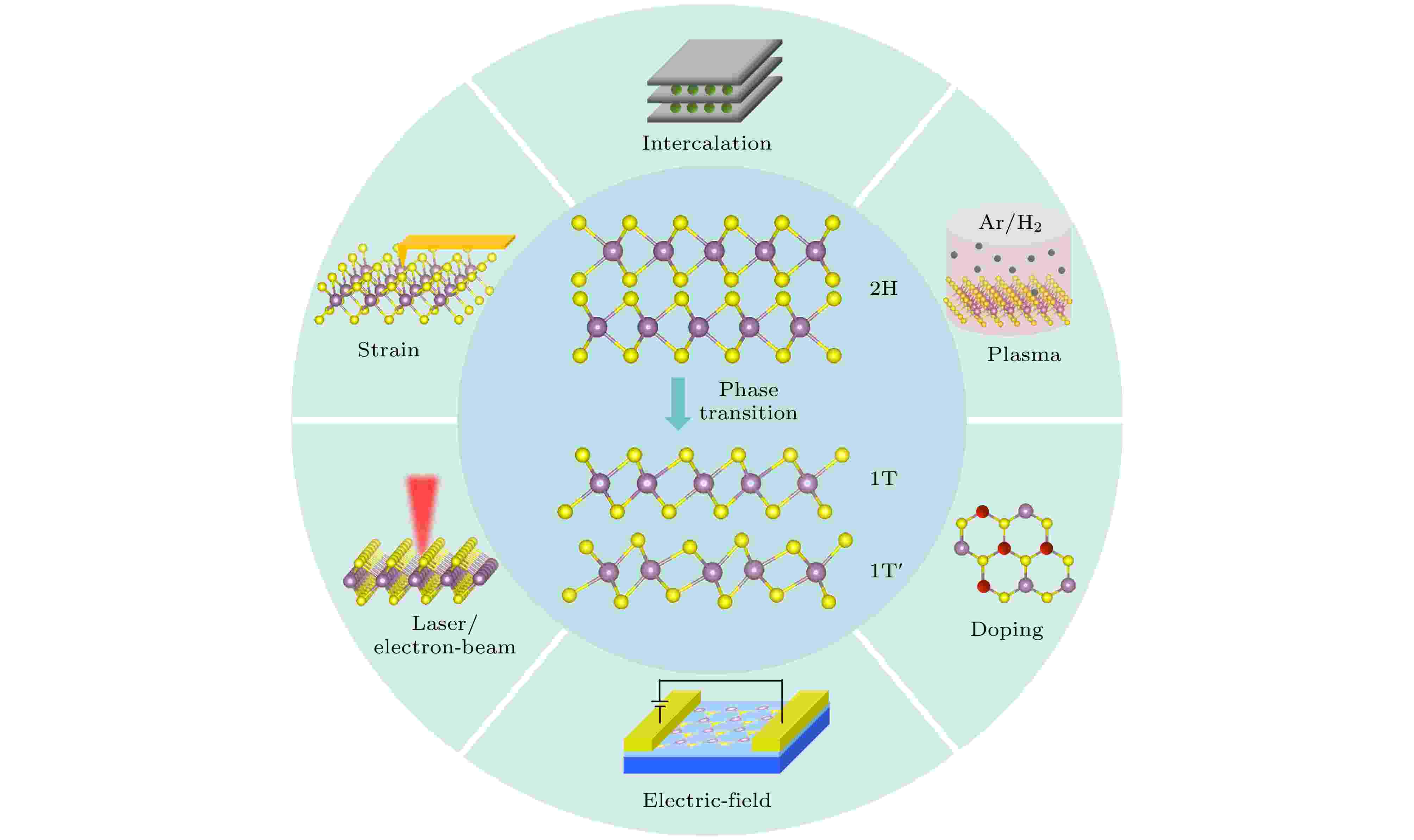 原子级厚度的二维过渡金属硫化物(2D-TMDs)材料展现出丰富的物理性质, 如量子自旋霍尔效应、超导电性、电荷密度波、铁电性和铁磁性等, 而受到了广泛的关注. 2D-TMDs材料通过不同的层间堆叠方式和元素配位几何, 可以呈现出物理性质迥异的晶相结构. 通过晶相工程改变2D-TMDs材料的晶相结构是实现其电子结构、量子态及功能特性调控的有效策略. 本文聚焦于热力学亚稳相2D-TMDs的制备, 详细总结了利用物理化学手段诱导晶相结构转变的调控机理和直接相选择合成特定晶相结构的技术进展, 及其对材料电子结构、超导电性、磁性、铁电性等物性的影响. 最后, 对利用晶相工程进行2D-TMDs结构和物性调控的研究现状和未来发展进行总结和展望.