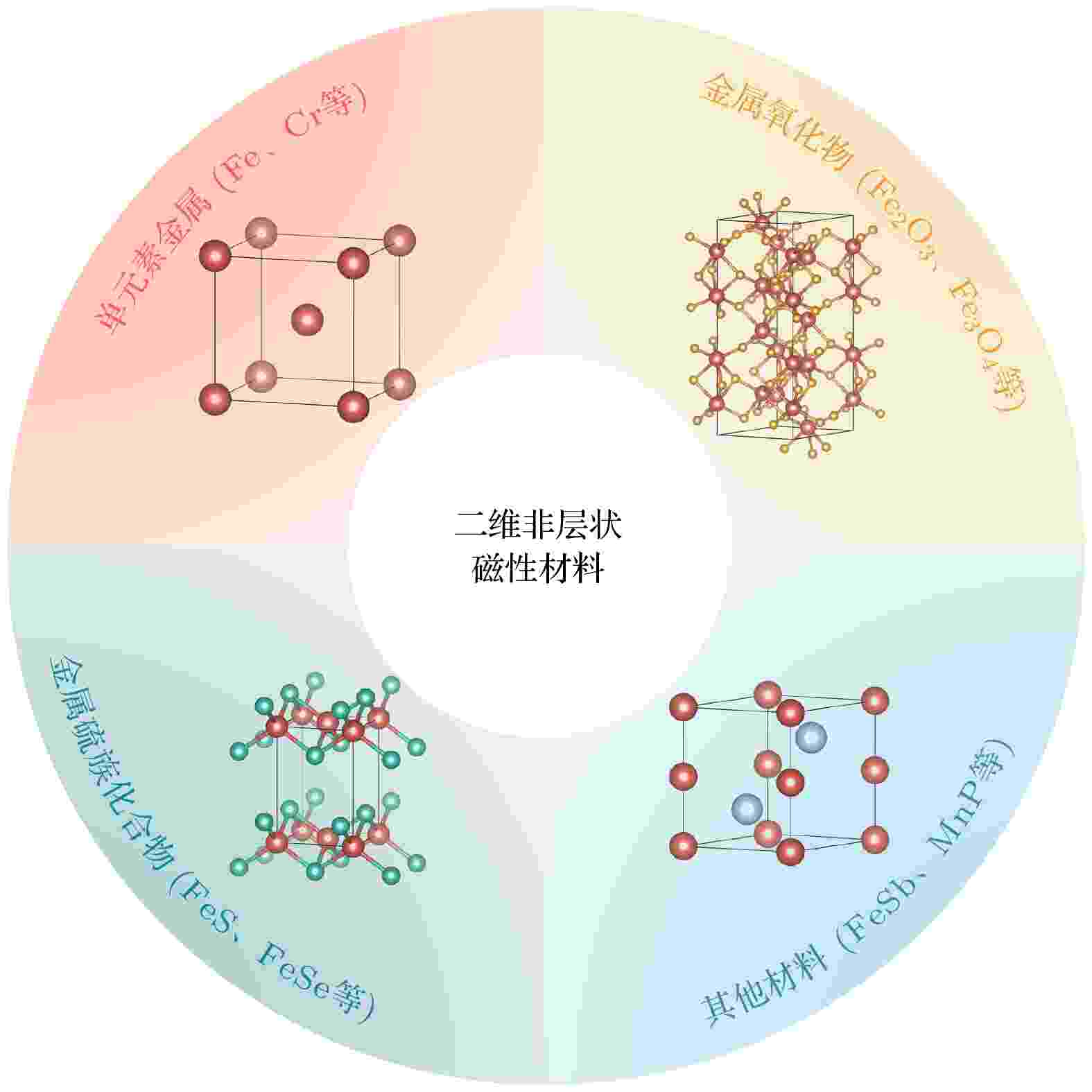 二维磁性材料是指厚度极薄且能够维持长程磁有序的纳米材料. 这类材料展现出明显的磁各向异性, 并由于量子限制效应与高比表面积特性, 导致电子能带结构与表面状态发生显著变化, 因此具有丰富而可调控的磁性, 并在自旋电子学领域展现出巨大的应用潜力. 二维磁性材料包含层间通过弱范德瓦耳斯力堆叠而成的层状材料和三维方向均通过化学键结合的非层状材料. 当前大多数研究都集中在二维层状材料, 而这些材料的居里温度普遍远低于室温, 且空气稳定性差. 相比之下, 非层状结构增强了材料的结构稳定性, 同时表面丰富的悬挂键增加了修饰其物理性质的维度. 这类材料正日益受到学术界的广泛关注, 并且它们的合成与应用已取得了重大进展. 本综述首先梳理了各种二维非层状磁性材料的制备方法, 并系统介绍了近5年来在各类材料中获得的二维非层状本征磁性材料以及它们在超薄极限下涌现出的一系列新奇物理现象, 同时也讨论了理论计算在揭示这些新奇现象时的关键作用以及修饰磁性的一些重要手段. 最后展望了二维非层状磁性材料在自旋电子器件中的应用潜力与发展方向.