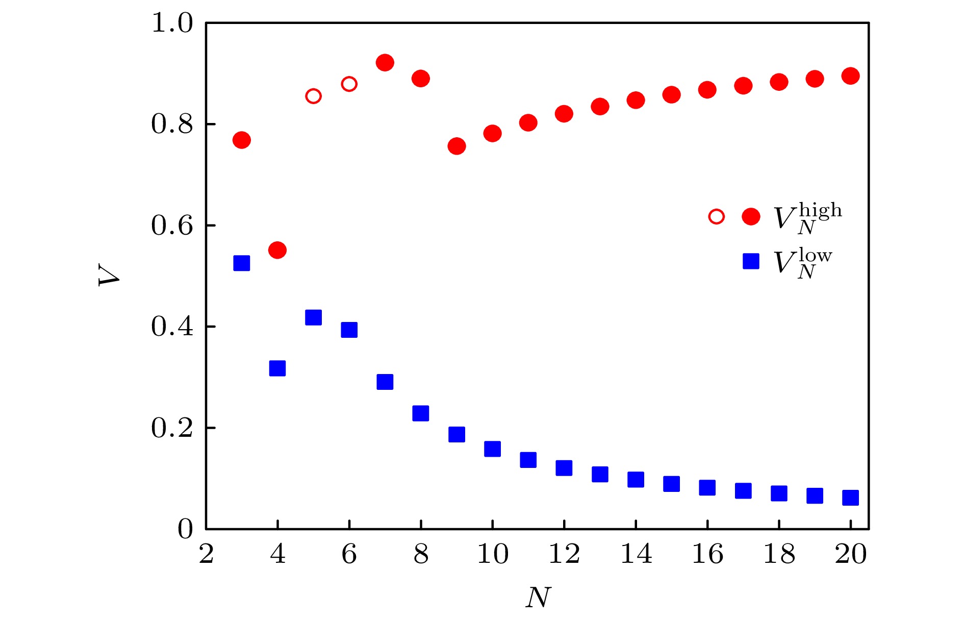 多体系统的纠缠判定与分类是当前量子信息领域人们研究的重点课题. 本文利用量子Fisher信息(quantum Fisher information, QFI)可以判定多体纠缠这一特性, 对多量子比特$W{\overline{W}} $态在白噪声环境下的量子纠缠进行了判定与分类研究. 在局域操作下, 结合已知量子态的信息, 给出了判定真正多体纠缠和含有量子纠缠的可见度判据. 特别地, 对于5比特$W{\overline{W}} $态和6比特$W{\overline{W}} $态, 由于拆分结构态的QFI最大值大于其本身的QFI, 所以无法严格地给出判定其真正多体纠缠的判据, 但给出了判定其可能是哪种纠缠结构的范围. 另外, 研究还发现随着量子比特数目的增加, 判定$W{\overline{W}} $态真正多体纠缠的条件变得越来越严苛, 而判定其含有纠缠的条件变得相对宽松. 考虑实验上对多体系统进行局域操作时, 紧邻量子比特间容易发生串扰现象, 本文借助Lipkin-Meshkov-Glick模型对不同多量子比特$W{\overline{W}} $态的纠缠分类进行了研究, 发现随着相互作用强度的增加, 即使在白噪声占比较大的情况下, 不同量子比特数的$W{\overline{W}} $态也可以区分, 解决了局域操作下区分困难的问题, 且随着相互作用强度的增大, 纠缠分类越容易实现. 这一点也充分展现了非局域操作相较于局域操作在纠缠分类方面的优势.