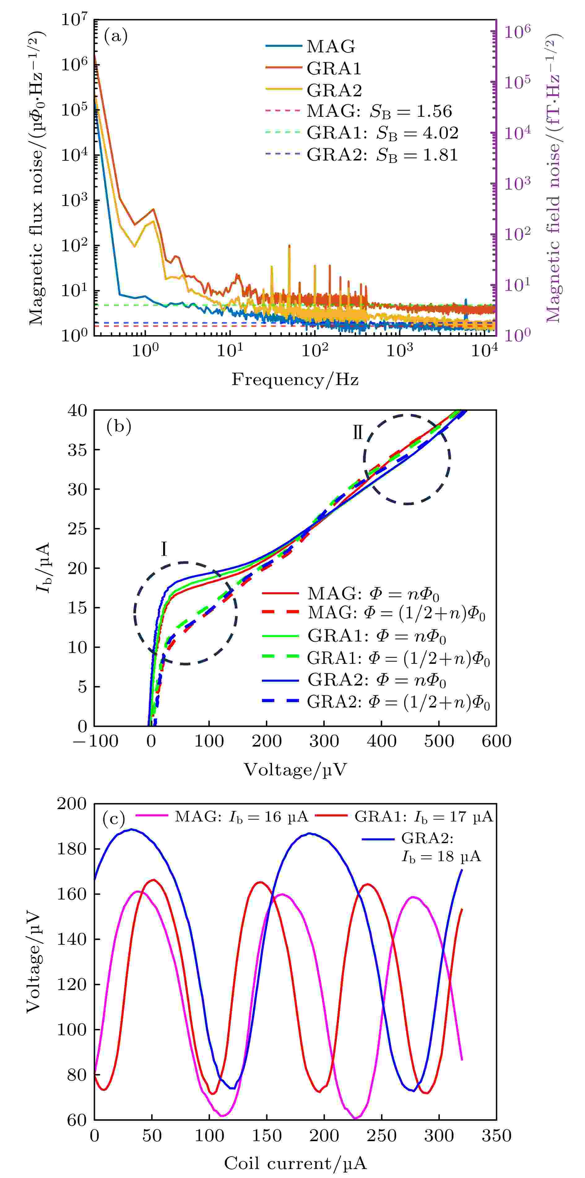 超导量子干涉器件(SQUID)作为一种超灵敏的磁通传感器, 在生物磁探测、低场核磁共振、地球物理探矿等领域得到广泛应用. 本文设计开发了一种用于脑磁(MEG)系统的集成SQUID芯片, 并进行了批量封装测试. 其中, 每个芯片上集成了两个一阶平面梯度计和一个磁强计, 采用亚微米约瑟夫森结制备技术, 实现0.7 μm×0.7 μm的亚微米结尺寸. SQUID与探测线圈采用Nb超导引线连接, 集成到同一芯片上. 对171个SQUID器件的测试结果显示, 这些器件在磁场白噪声、I-V特性、V-Φ特性等方面表现优异. 本文制备的SQUID器件工作电流集中在15—20 μA, 电压摆幅集中在80—120 μV. 此外, 超过80%的SQUID器件的磁场白噪声低于$ 5{\text{ fT/}}\sqrt {{\text{Hz}}} $, 能够满足多通道SQUID脑磁系统的要求.