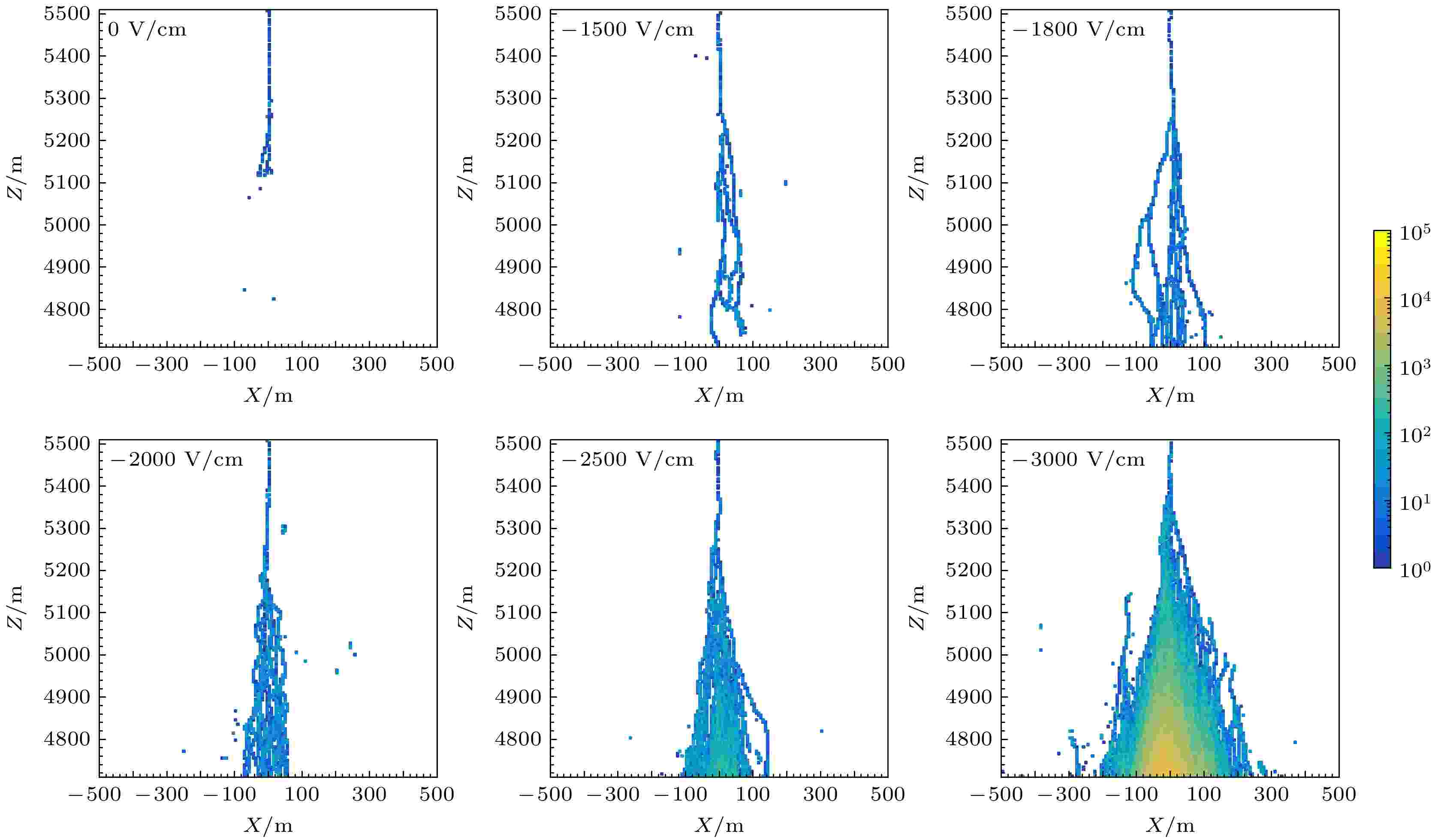 来自地球大气层的伽马射线闪(TGF)常伴随雷暴、闪电活动, 现已成为宇宙线物理和大气物理交叉学科中的研究热点. 相对论逃逸电子雪崩机制(RREA)被普遍认为可解释卫星和地面实验中伴随闪电先导过程的TGF现象. 本文基于CORSIKA软件包, 模拟了宇宙线次级电子在雷暴云强电场中引发的RREA过程, 并研究了RREA电子的强度和能量分布. 结果表明, 随着雷暴云内电场强度和电场区垂直尺度的增加, RREA电子数目均呈指数增长; 发生RREA机制的雪崩距离常数(λ)随电场强度的增加而减小, 当电场为–1600和–3000 V/cm时, λ分别约为282 m和69 m. RREA电子的能谱随电场强度和电场区垂直尺度的增加而逐渐变软, 其平均能量随电场强度的增加而增加, 当雷暴云内电场区垂直尺度大于400 m时, RREA电子的平均能量逐渐趋于稳定. 模拟发现, 电场为–3000 V/cm、电场区的垂直尺度为800 m时, RREA电子的平均能量约为11.7 MeV. 本文通过蒙特卡罗方法复现了大气中难以直接观测的RREA过程, 该模拟结果为研究TGF源区特征提供了重要信息, 为地面实验探测下行TGF提供了线索, 并有助于研究大气中闪电的触发机制.
