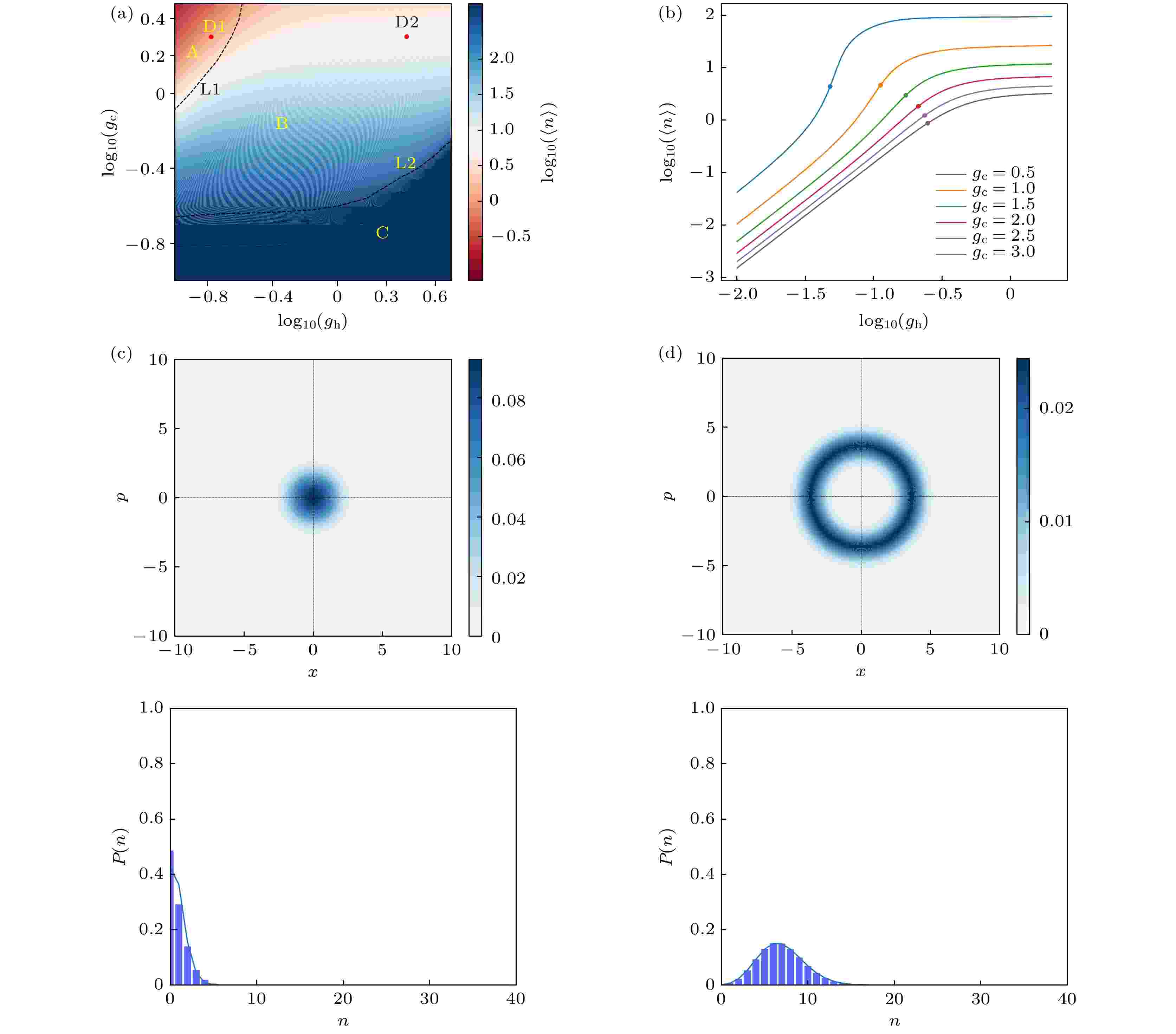 在囚禁离子系统中, 基于范德波尔振子机制的单离子声子激光态已在微弱电场测量和弱力检测等领域得到应用. 声子激光态作为一种与光子激光的性质类似的相干声子态, 通过激光相干边带激励和冷却技术, 可以精确地调控离子的振动状态, 并有望在连续变量量子计算、量子非线性动力学和量子精密测量等领域展现进一步的应用. 本文采用三能级模型对单离子量子区域内的声子激光态进行理论研究, 通过求解主方程, 获得了声子激光态的稳态相图, 分析了系统的Wigner准概率分布和二阶关联特性. 本文针对离子阱体系提出了实验实现方案, 即通过蓝边带激光和红边带激光构成的双色光场共同作用于囚禁的单个40Ca+离子, 从而在量子区域内产生声子激光态, 并采用特征函数测量法对振动量子态进行表征.