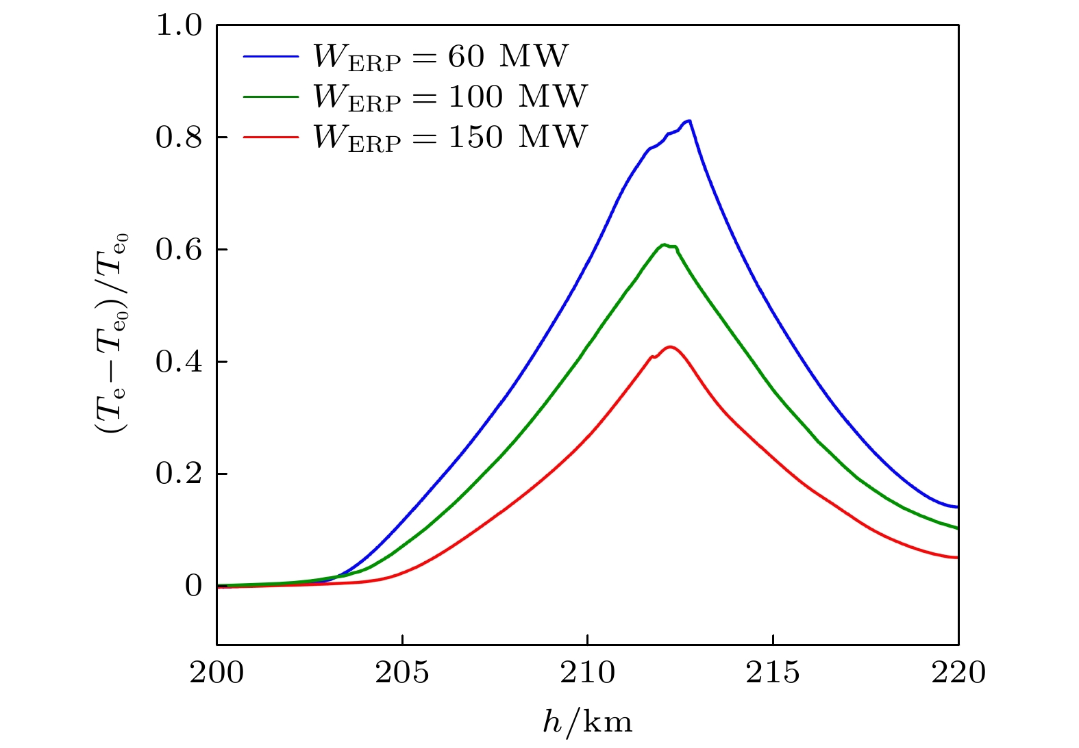 粒子种类 碰撞截面/cm2 N2 [(2.82—3.41)×10–4Te] × Te1/2×10–17 O2 2.2×10–16 × (1+3.6×10–2Te1/2) O 1×10–15 H [(54.7—7.45)×10–3Te] × 10–16 He 5.6×10–16 粒子种类 碰撞频率/Hz N2 2.33×10–11n(N2) [(1—1.2)×10–4Te] Te O2 1.8×10–10n(O2) [1+3.6×10–2Te1/2] Te1/2 O 8.2×10–10n(O)Te1/2 H 4.5×10–9n(H) [(1—1.35)×10–4Te] Te1/2 He 4.6×10–10n(He)Te1/2 表 3 电磁波对电离层等离子体加热背景参数[31]
