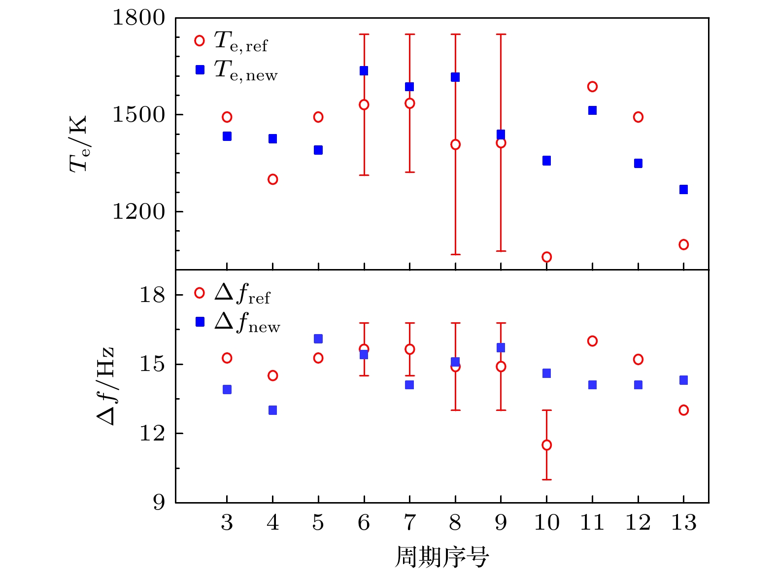 参数名称 参数值 电子温度/K 1535.3—1832.4 电子数密度/m–3 3.72×1011—4.93×1011 地磁场倾角/° 72.1 地磁场磁感应强度/T 4.6×10–5 等离子体频率/MHz 5.47—6.30 上混杂频率/MHz 5.63—6.44 下混杂频率/kHz 7.88 -