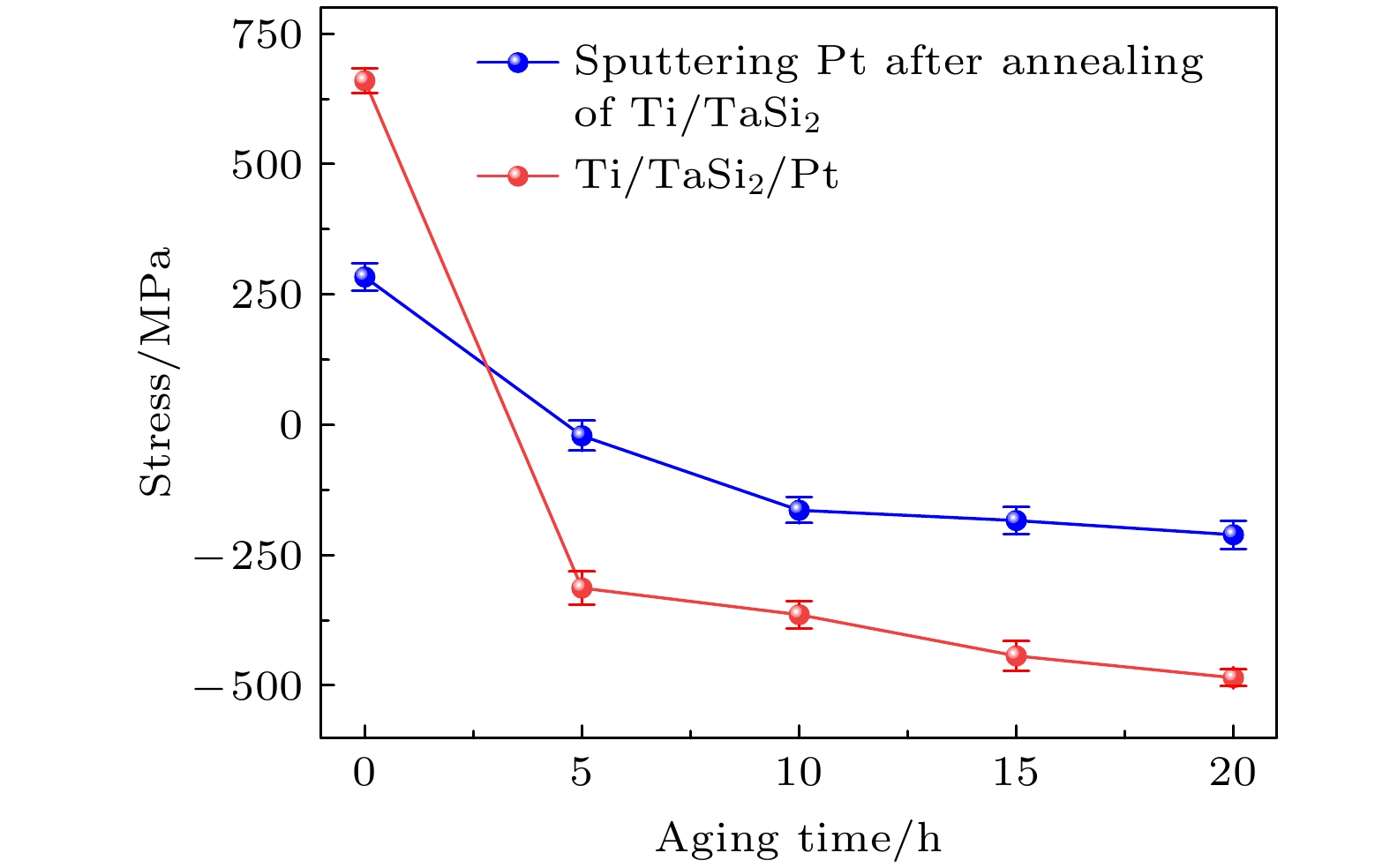 Under high temperature and pressure conditions, silicon-based devices experience leakage and deformation due to the self-heating effect, making them unable to operate stably for a long time. Silicon carbide (SiC), as a representative third-generation semiconductor material, is an ideal option for high-temperature, high-frequency, and high-power electronic devices. However, the high-temperature performance limitations of 4H-SiC devices stem from the stability of ohmic contact electrodes and metal interconnections. The output of the lead electrodes is unstable at present, and oxygen intrusion at high temperatures can easily cause output failures. Previous studies indicate that the SiC/Ti/TaSi2/Pt multilayer structure holds significant potential for ohmic contacts. Building upon this ohmic contact foundation, this study proposes a batch sputtering-annealing process to prepare high-temperature-resistant lead electrodes. This involves altering the sequence of annealing and sputtering: first sputtering Ti/TaSi2 onto the SiC substrate and annealing to form the ohmic contact, followed by depositing a Pt protective layer to construct a novel SiC/Ti/TaSi2/Pt electrode structure. Comparative analysis of the two experimental groups is conducted using SEM, AES, XRD, thin-film stress measurement, and semiconductor analyzers. The batch-sputtered and annealed electrode structure can enhance density and reduce residual stress, with an initial specific contact resistivity of 6.35 × 10–5 Ω·cm2. High-temperature aging tests at 600 °C demonstrates superior electrical stability for electrodes formed by sputtering Pt onto Ti/TaSi2 after ohmic contact formation. These electrodes maintain ohmic characteristics even after 20-hour air aging, whereas traditional co-sputtered ohmic contacts transition to Schottky contacts. Pt effectively suppresses atomic diffusion and oxidation reactions, resulting in a smooth electrode microstructure without curling. The batch sputtering-annealing process not only greatly enhances the overall performance of SiC ohmic contacts but also provides crucial guidance for realizing the structural design and performance improvement of ohmic contacts by using other metal combinations. This approach holds significant reference value for the high-temperature packaging of third-generation semiconductor power devices and the development of electronic systems operating in harsh environments.