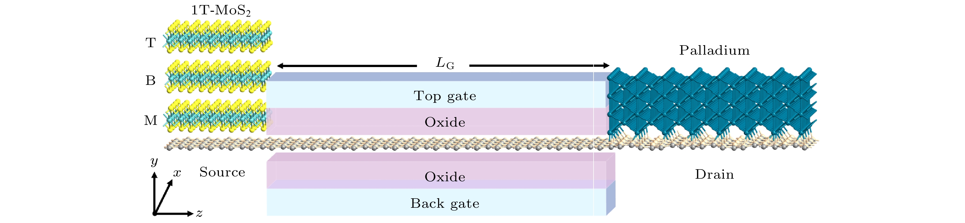 By using the first-principles method based on density functional theory and non-equilibrium Green’s function, the transport properties of 5-nm two-dimensional SiC field-effect transistors with asymmetric metal phase 1T-MoS2 sources and Pd drain electrodes are investigated. The influence mechanism of increasing the electrode layers of 1T-MoS2 and reducing the working electrical compression on the device performance is systematically analyzed. The Schottky barriers extracted from the zero bias and zero gate voltage transport spectra show that the valence band maximum of SiC in the channel regions of MFET, BFET and TFET are closer to the Fermi level after the source drain electrode has been balanced. Therefore, these three devices belong to P-type contact, and the height of the hole Schottky barrier increases with the increase of the number of 1T-MoS2 layers in the source electrode, which are 0.6, 0.76, and 0.88 eV, respectively. In addition, the increase of 1T-MoS2 layers will also lead to the increase of the density of states in the source electrode, thereby improving the transport coefficient at the band edge. The effects of the two on the transport capacity of the device are opposite, and there is a competitive relationship. The transfer characteristics of devices show that the wide band gap of SiC can significantly suppress the short channel effect, so that all devices can meet the requirements of Off-state. More importantly, the subthreshold swings of all devices at an operating voltage of 0.64 V are all close to the physical limit of 60 mV/dec. The ON-state currents of MFET, BFET and TFET can reach 1553, 1601 and 1702 μA/μm under the more stringent IRDS HP standard, and the three performance parameters, i.e. intrinsic gate capacitance, power-delay product and delay time, can greatly exceed the standards in the international road map of equipment and systems (IRDS) for high-performance devices. In addition, the working voltage of MFET can be reduced to 0.52 V, and the corresponding power-delay product and delay time are as low as 0.086 fJ/μm and 0.038 ps, which are only 14% and 4% of the IRDS standard. The asymmetric source drain electrode design strategy proposed in this work not only solves the problems about low On-state current and short channel effect restricting Off-state current of existing two-dimensional material field-effect transistors, but also provides an important solution for developing ultra-low power nano electronic devices in the post Moore era.