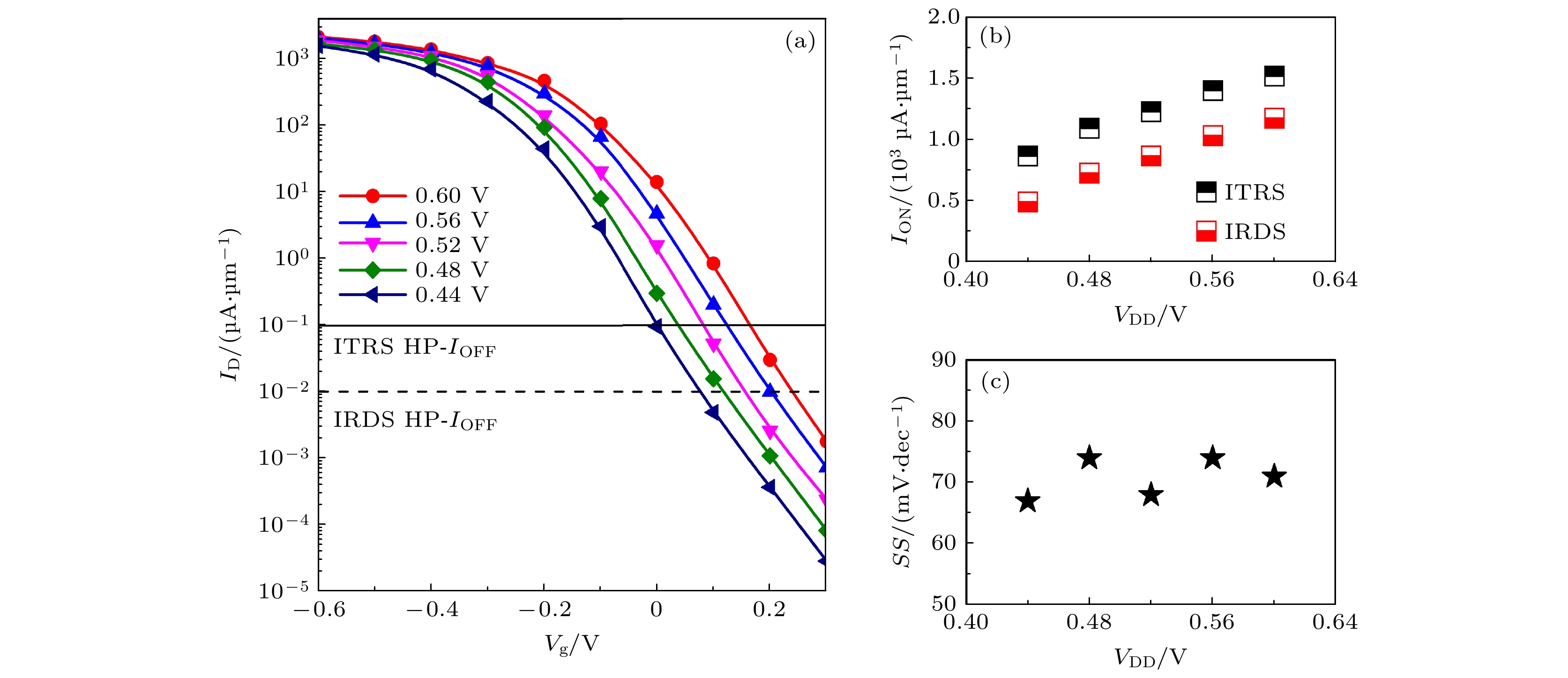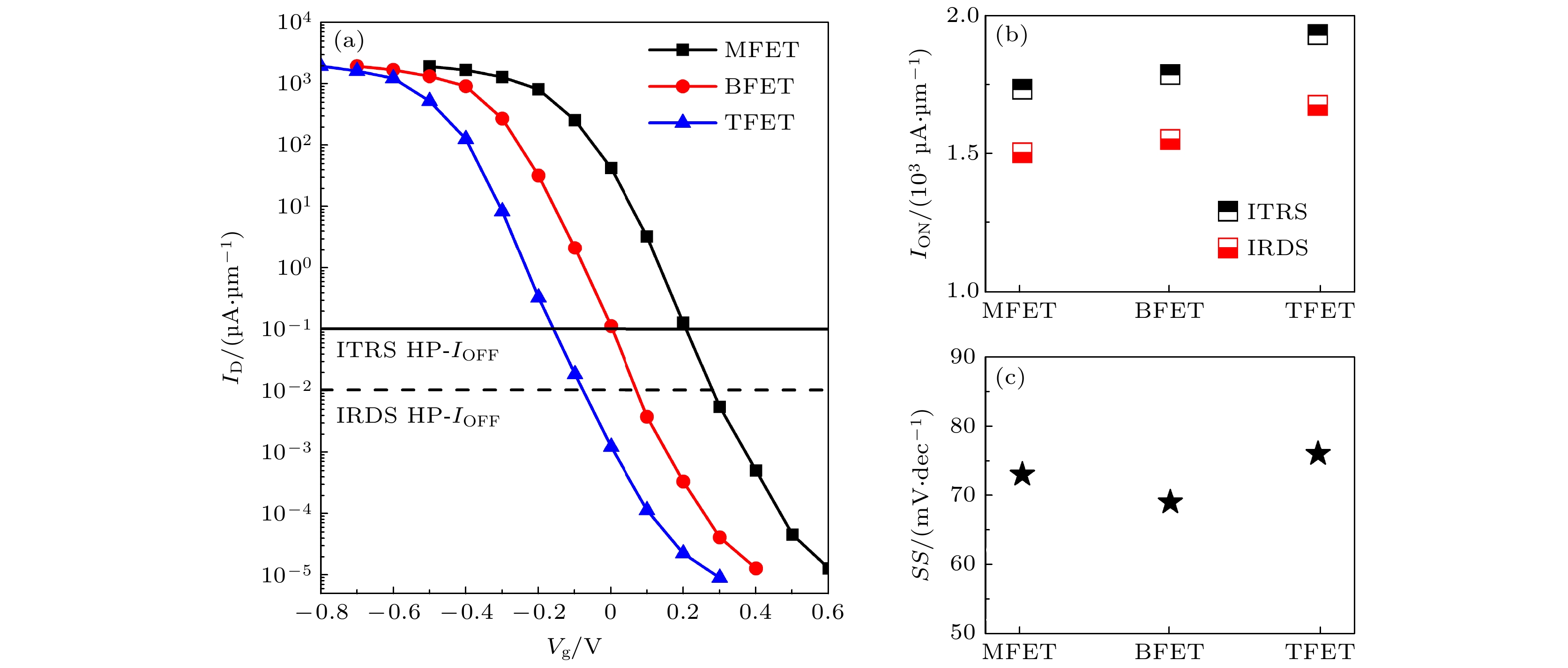 Table 1. Performances of the MFET, BFET和TFET against the HP devices requirements of the IRDS.