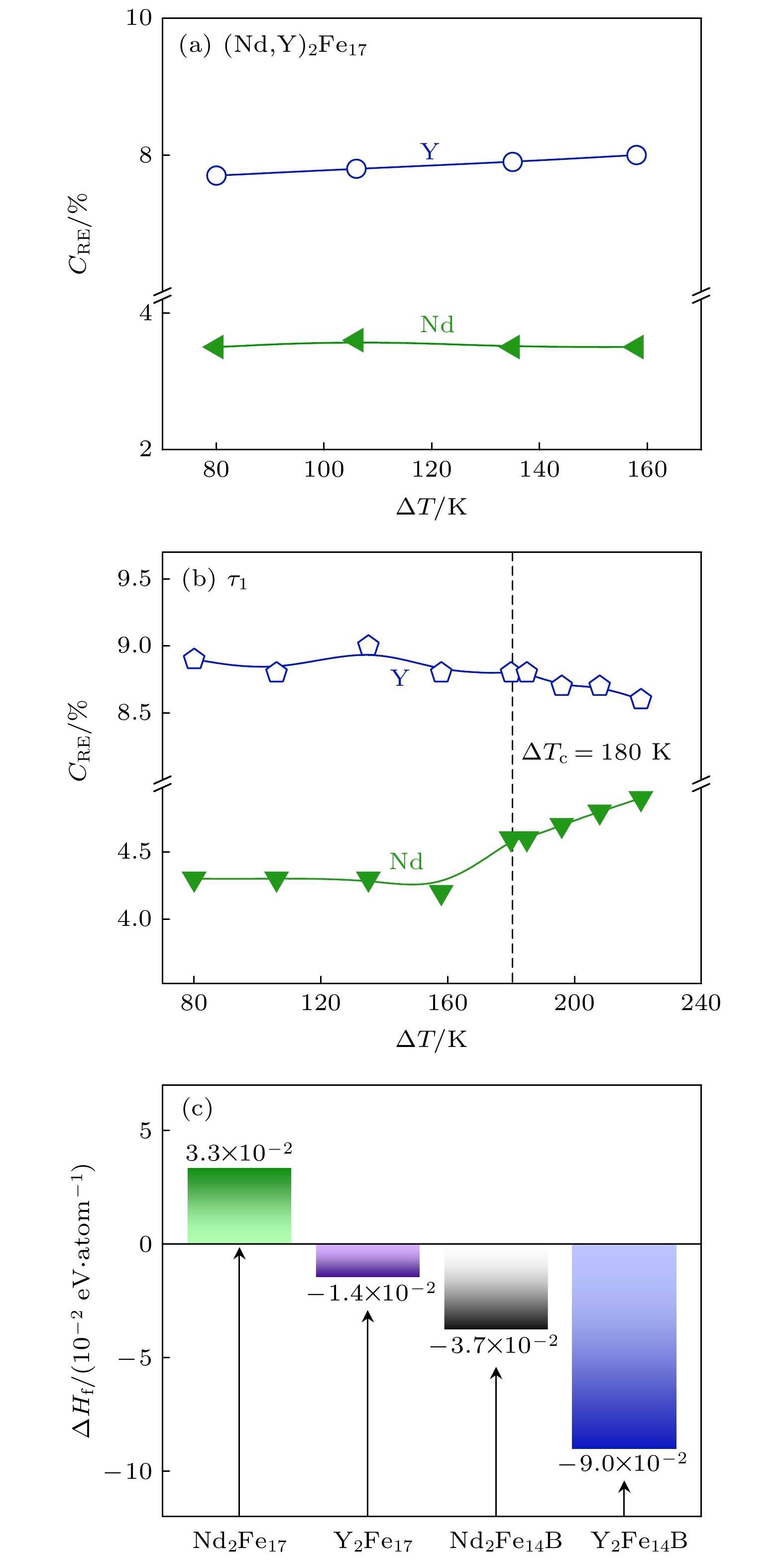 Table 1. Physical parameters for calculating nucleation rates of (Nd, Y)2Fe17 and τ1 phases.