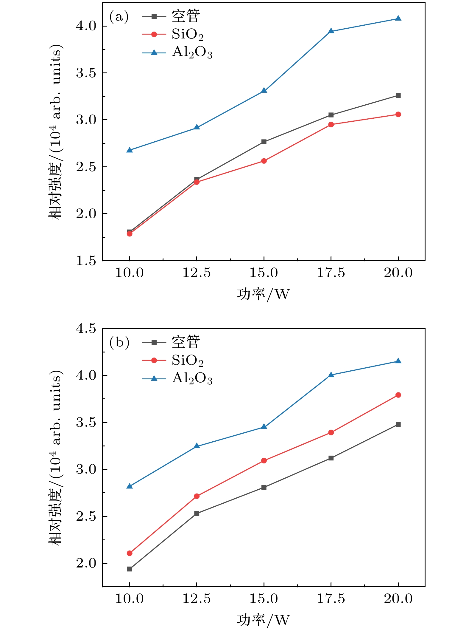 放电功率/W 平均电场强度 (kV·cm–1) 空管 SiO2 Al2O3 10 1.32 1.40 1.55 12.5 1.46 1.48 1.72 15 1.53 1.61 1.79 17.5 1.68 1.74 1.95 20 1.82 1.88 2.11 表 A1 数值模拟中的二氧化碳活性粒子的种类及参数