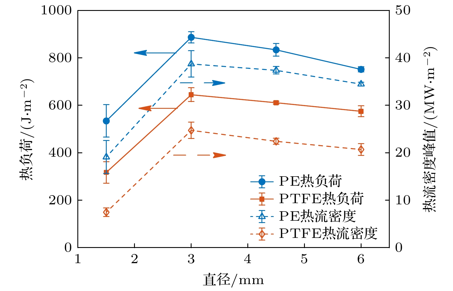 /(10–3 m2·J–1)Ni 8.91 440 7.32 1.58 Au 19.3 128 4.04 1.47 Ag 10.5 235 4.13 1.52 Cu 8.92 385 4.40 1.16 Fe 7.87 449 7.09 1.70 Al 2.70 897 4.60 1.74 Pt 21.1 133 3.88 1.26 Pd 12.0 240 3.76 1.12 Mg 1.74 1023 4.14 2.07 表 2 薄膜量热计热流测量系统参数