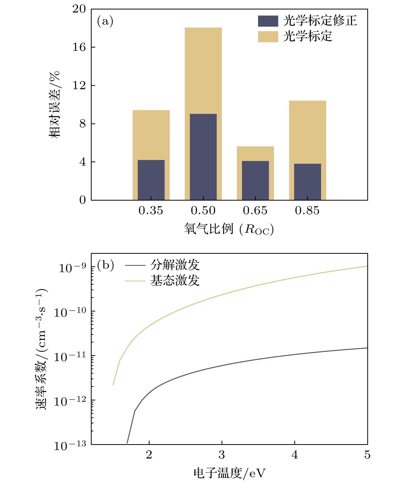 $ R_V^{{\text{rad}}} $: 气相自发辐射速率; A: 爱因斯坦系数E3 $\begin{array} {cc} {K_V} = a T_{\text{e}}^b\exp \left( { - {c}/{{{T_{\text{e}}}}}} \right) ; \\ K_V^{{\text{exc}}} = \displaystyle\int_0^\infty {\sigma ({E_{\text{e}}})\sqrt {\dfrac{{2{E_{\text{e}}}}}{{{m_{\text{e}}}}}} f({E_{\text{e}}}){\text{d}}{E_{\text{e}}}} \end{array} $ $ {T_e} $: 电子温度; a, b, c : Arrhenius公式参数;