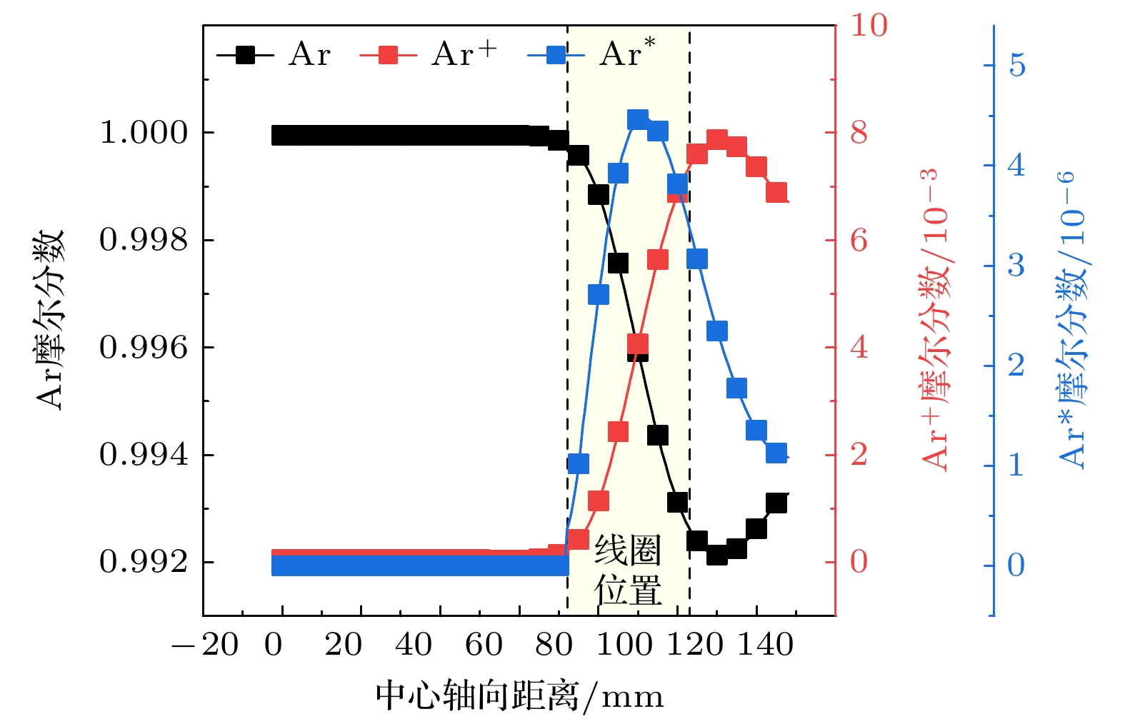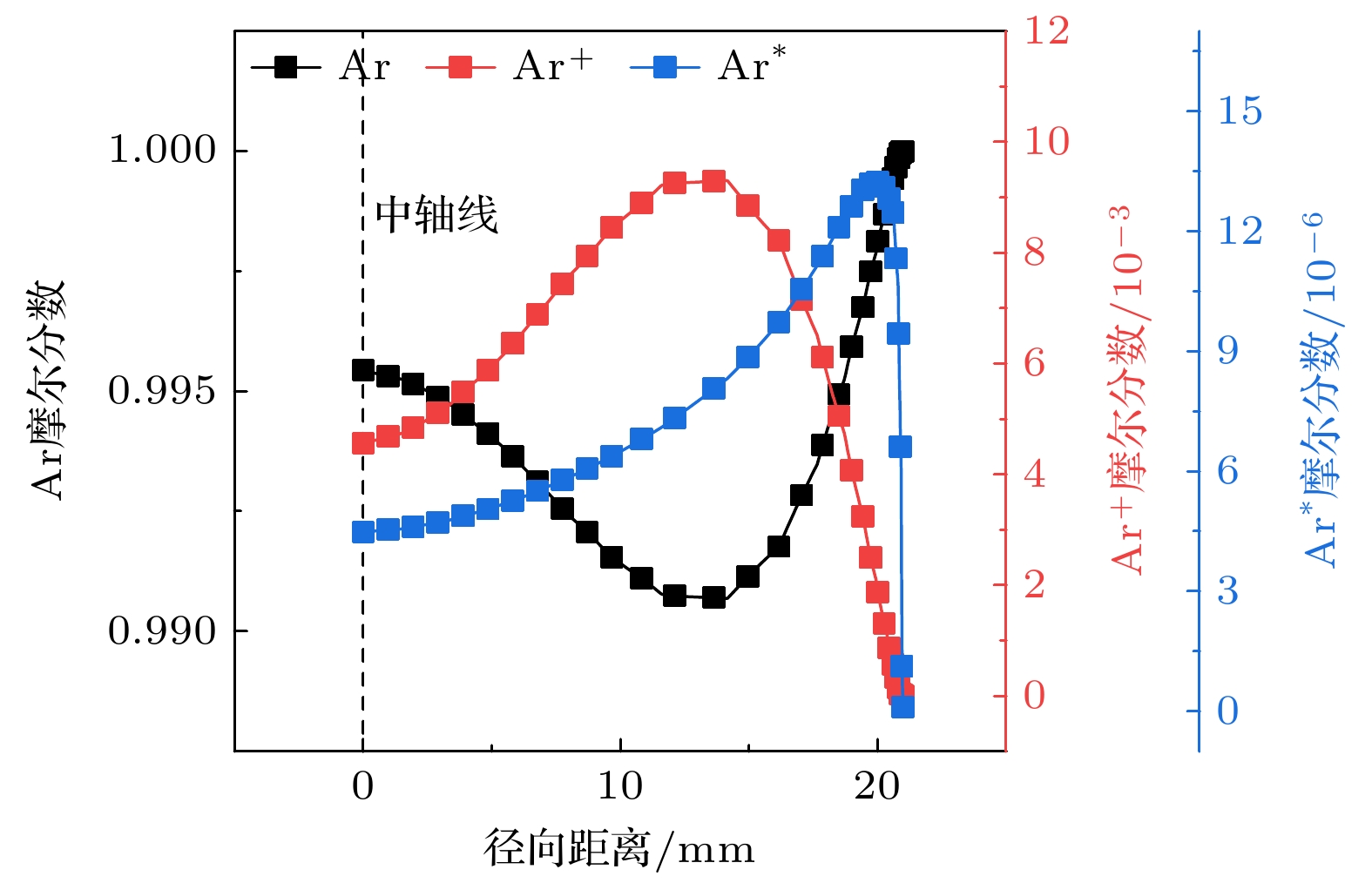 率系数Δε/eV 1 e + Ar → e + Ar 弹性碰撞 kel — 2 e + Ar → e + Ar* 激发 kex 11.56 3 e + Ar* → e + Ar 激发 ksc –11.56 4 e + Ar → 2e + Ar+ 电离 ki 15.6 5 e + Ar* → 2e + Ar+ 电离 ksi 4.14 6 Ar*+Ar* → e+Ar+Ar+ 潘宁电离 kmp — 7 Ar + Ar* → Ar + Ar 亚稳猝灭 k2p — -