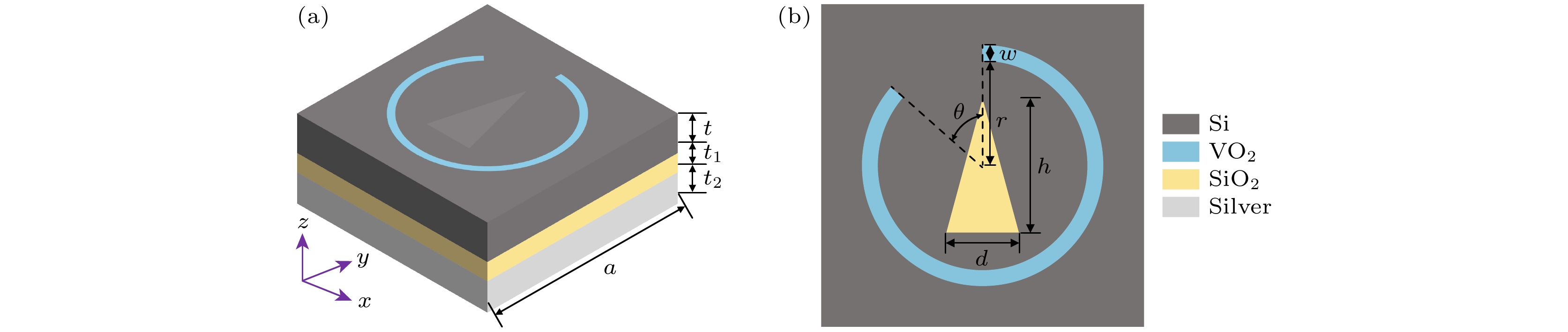 Figure 2. Schematic diagram of the VO2 insulating state working mode and the working principle of the STOV generator: (a) When the VO2 temperature is lower than 68 ℃, the system is capable of generating the STOV beam; (b) the trajectory of complete polarization conversion at the resonant frequency, as indicated by the arrows in the figure.