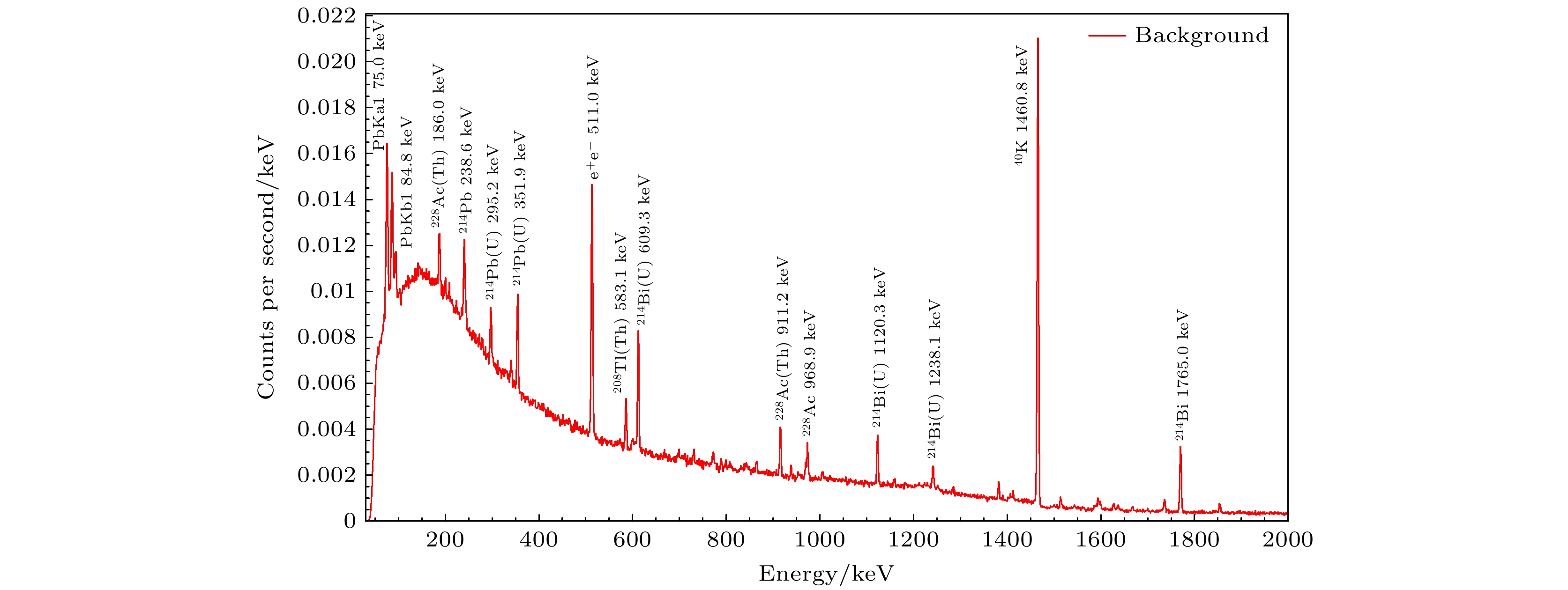 Figure 4.  Natural background energy spectra after shielding (93 h)