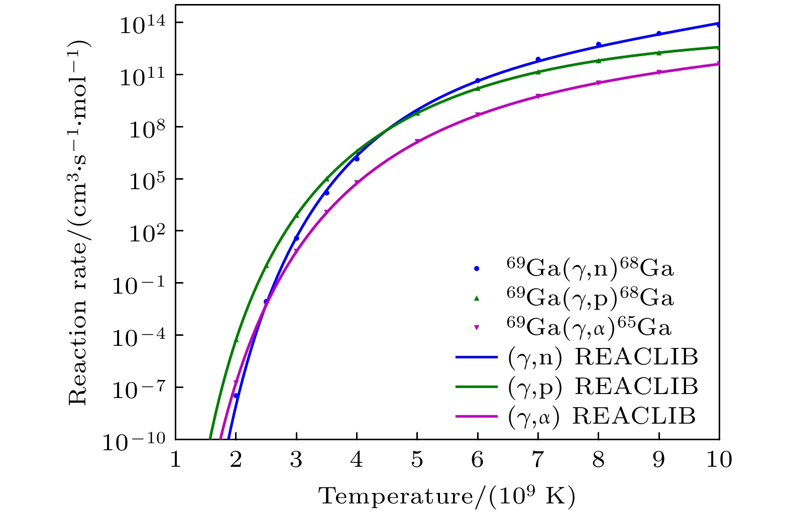 图 9  $ ^{69} {\rm{Ga}}$的核天体反应率