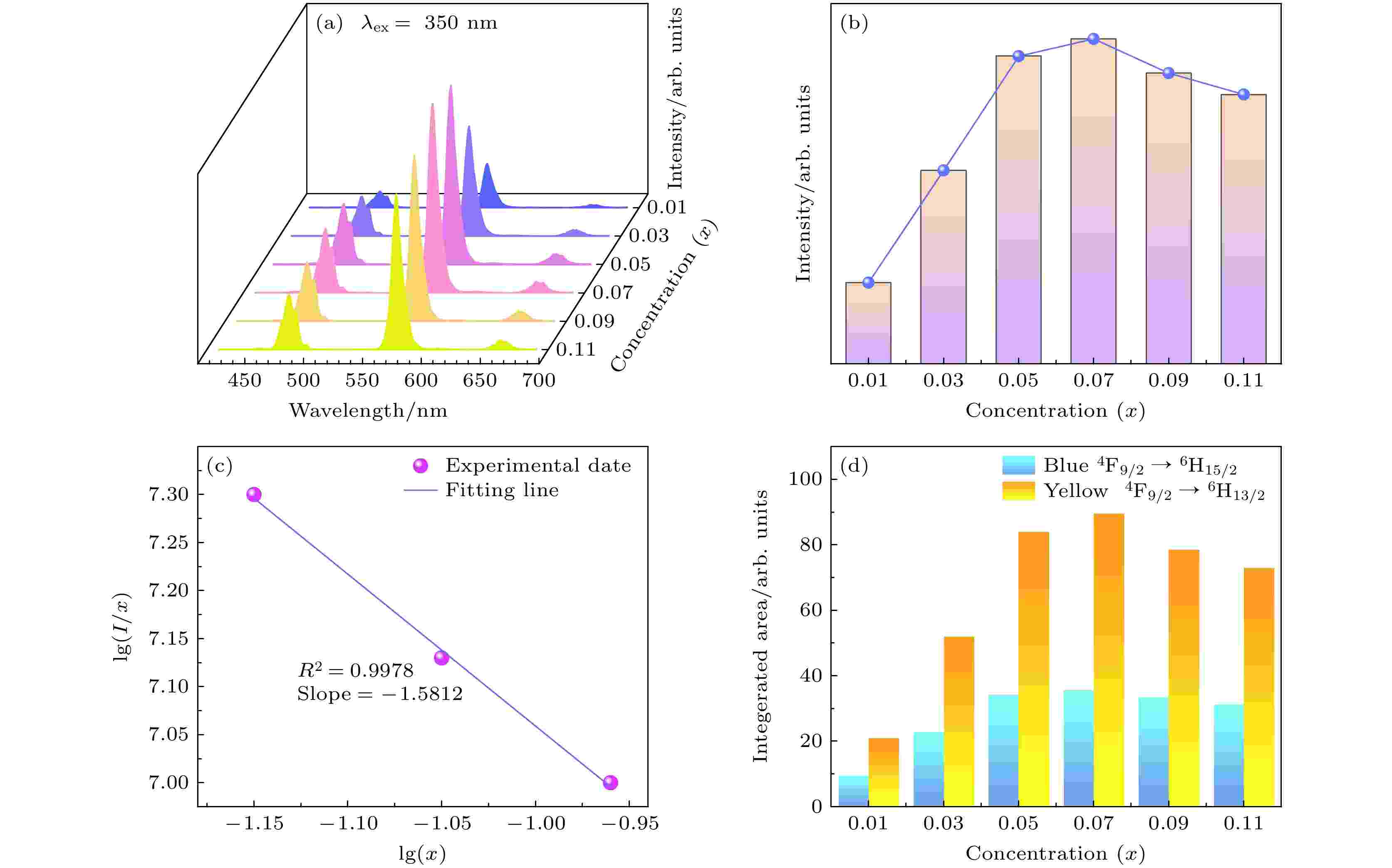 Rare earth-activated phosphors have shown great potential applications in various fields, such as lighting, displays, anti-counterfeiting, and optical thermometry. This study aims to synthesize a series of Dy3+-doped Ca7NaY(PO4)6 phosphors through high-temperature solid-state reaction, focusing on developing multifunctional optical materials for lighting and temperature sensing. The phase purity and morphological characteristics of the obtained samples are confirmed by X-ray diffraction and scanning electron microscopy. Luminescence properties and energy transfer mechanisms are systematically investigated through photoluminescence spectroscopy and fluorescence decay analysis. Under 350-nm near-ultraviolet excitation, the emission intensity of Ca7NaY(PO4)6: Dy3+ increases with Dy3+ concentration rising until reaching an optimal value at x = 0.07, beyond which concentration quenching occurs. This quenching behavior is attributed to enhanced non-radiative energy transfer at higher Dy3+ concentrations, leading to a corresponding decrease in fluorescence lifetime. The optimized Ca7NaY(PO4)6: 0.07Dy3+ phosphor displays remarkable thermal stability, retaining 87.6% of its initial emission intensity at 150 ℃. The white light emitting diode(LED) device fabricated using the obtained phosphor and near-UV LED chip shows excellent performance with a correlated color temperature of 5680 K, CIE coordinates of (0.3275, 0.3883) in the white light region and a color rendering index of 85. Furthermore, temperature-dependent fluorescence intensity ratio analysis reveals excellent optical thermometric performance, achieving a maximum relative sensitivity (Sr) of 1.72 %/K. These results indicate that the Ca7NaY(PO4)6:Dy3+ phosphor exhibits significant potential applications in single-matrix phosphor-converted white LEDs and high-precision optical optical thermometry.