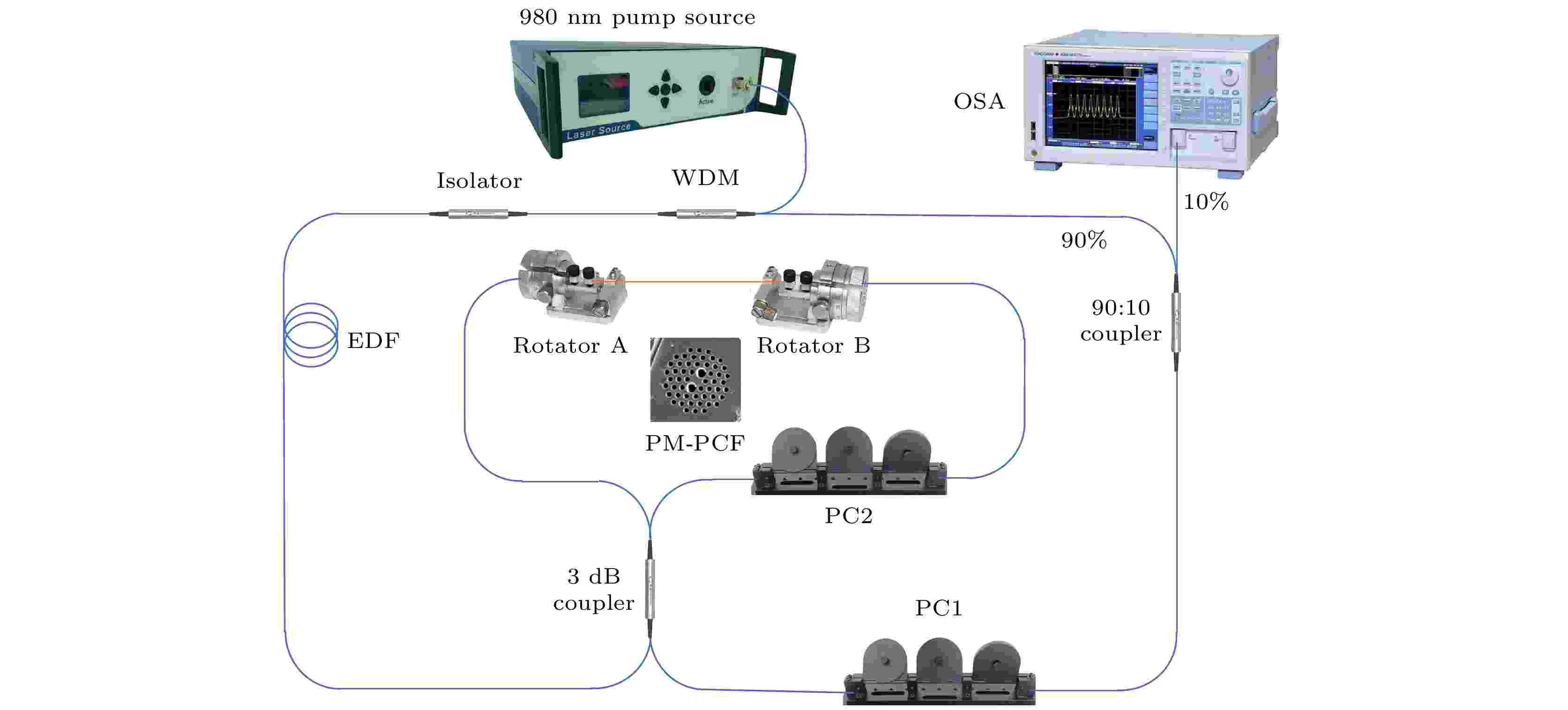 Torsion information is important for rotating systems, industrial monitoring, transportation engineering, and medical equipment. Optical fiber torsion sensors have significant advantages, such as immune to electromagnetic interference, small size, and light weight. Sagnac loop interferometer (SI) torsion sensors have attracted much attention due to their compact structure, high sensitivity, excellent stability, and low cost. However, their nonlinear response limits the measurement range, while the wide full width at half maximum and low signal-to-noise ratio (SNR) reduce the resolution of torsion sensors. To solve these problems, a fiber ring laser torsion sensor (FRLTS) based on homemade polarization-maintaining photonic crystal fiber (PM-PCF) is proposed in this work. The torsion sensor introduces a PM-PCF based SI into the erbium-doped fiber ring cavity as a filter and torsion sensor device. The interference spectrum of SI is derived by the transmission matrix method and simulated, and then the sensing principle of the sensor is obtained. Subsequently, the experimental system is set up to study the lasing output characteristics and torsion response of the FRLTS. By taking advantage of the narrow linewidth and high signal-to-noise ratio (SNR) of fiber ring lasers, a high-resolution fiber torsion sensor is successfully obtained. The experimental results show that the maximum linear torsion measurement range of the sensor can be extended to 480° (from –260° to 220°), the maximum torsion sensitivity is 0.032 nm/(°), and the resolution is as high as 0.681°. Furthermore, in a temperature range from 20 ℃ to 95 ℃, the temperature-induced wavelength variation is only 4×10–3 nm/℃, corresponding to a torsion angle measurement error of 0.16(°)/℃. Compared with existing reports, its temperature stability is increased by 37.5 times, while the temperature-induced error in angle measurements is reduced by 9.375 times. The proposed FRLTS not only successfully achieves high-resolution and wide-range torsion sensing, but also effectively suppresses cross-sensitivity caused by temperature. Therefore, the torsion sensor has significant potential applications in fields such as aerospace and robotics where precise measurement of minute torsion angle is required in special environments.
