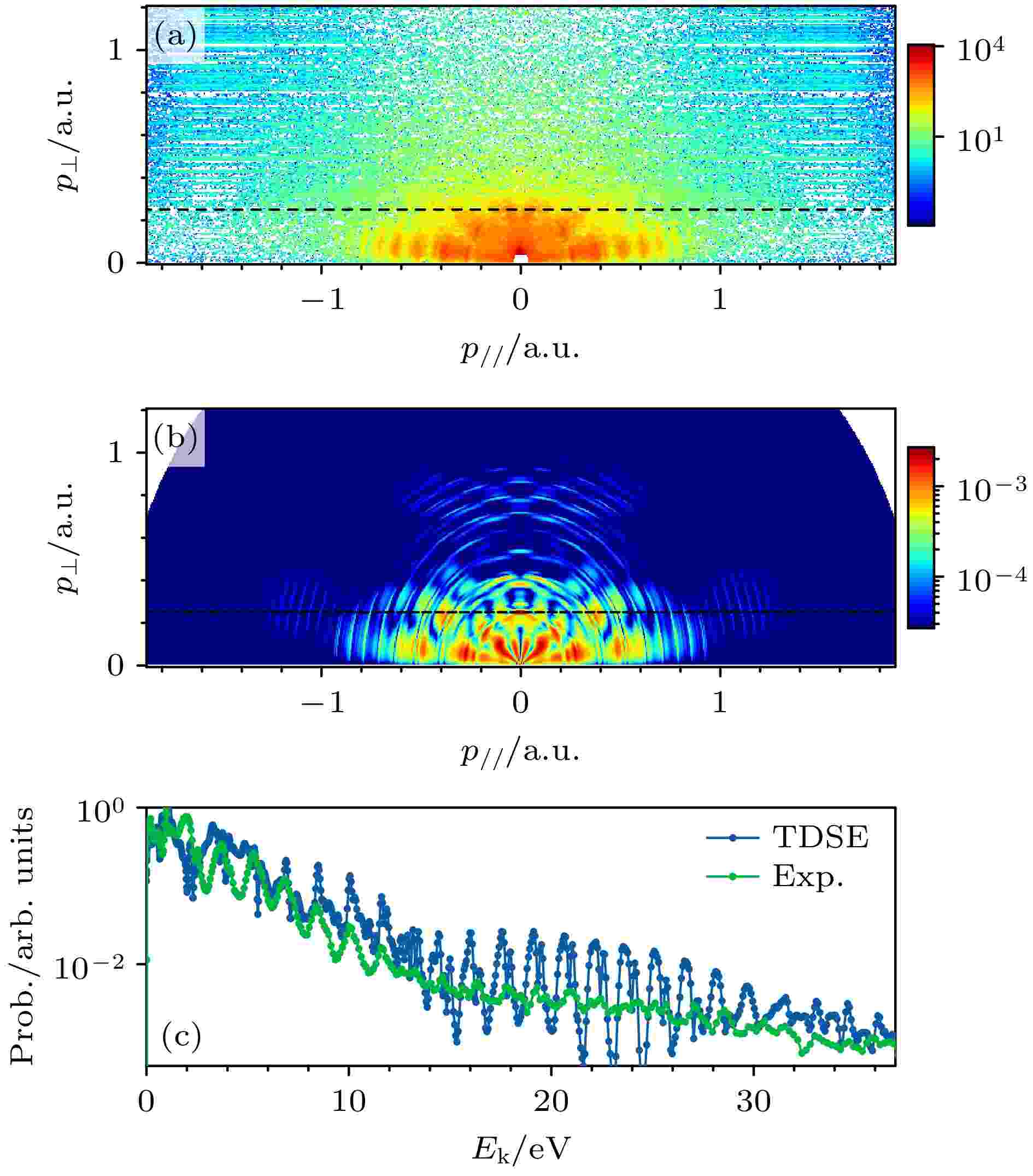 Purpose: The interaction of intense, ultrashort laser pulses with atoms gives rise to rich non-perturbative phenomena, which are encoded within the final-state photoelectron momentum distribution (PMD). A particularly enigmatic feature often observed in the multiphoton ionization regime (Keldysh parameter $ \gamma \gtrsim 1 $), is a complex, fan-like interference pattern in the near-threshold, low-energy region of the PMD. The physical origin of this structure has been a subject of extensive debate, with proposed mechanisms ranging from multipath interference in the Coulomb field to complex sub-barrier dynamics. This work aims to provide a physical explanation for this phenomenon. We hypothesize and demonstrate that this fan-like structure is not only the consequence of Coulomb focusing, but also a direct and sensitive signature of non-adiabatic dynamics occurring as an electron tunnels through the laser-dressed atomic potential barrier. Our goal is to clearly separate the key physical ingredients responsible for shaping this quantum interference. Methodology: To achieve this, we employ a synergistic three-pronged approach that combines experiment, exact numerical simulation, and a sophisticated theoretical model.1. Experiment: We perform velocity-map imaging measurements on argon atoms ionized by a 798-nm 35-fs laser pulse at a peak intensity of $ 6.3 \times 10^{13} $ W/cm2, and the experimental results clearly show the low-energy fan-like interference pattern.2. Quantum Benchmark: We solve the time-dependent Schrödinger equation (TDSE) within the single-active-electron (SAE) approximation by using a well-established model potential for argon, which accurately reproduces its ionization potential and ground-state properties. After performing a focal-volume average to simulate experimental conditions, the TDSE results show excellent qualitative agreement with the measurements, establishing the TDSE as a reliable quantum benchmark for our investigation.3. Semiclassical Model (CTMC-p): The core of our analysis relies on a custom-developed semiclassical trajectory model based on the Feynman path-integral formulation. In this framework, ionization process is divided into two steps: (i) an electron tunnels through the potential barrier at an initial time $ t_0 $ and position $ {\boldsymbol{r}}_0 $, and (ii) it propagates classically in the combined laser and ionic fields according to Newton’s equations. Crucially, each trajectory is endowed with a quantum phase accumulated along its path, $ \varPhi_k $, allowing for the coherent summation of all trajectories ending with the same final momentum, $ M_j = \displaystyle\sum\nolimits_k {\mathrm{e}}^{{\mathrm{i}}\varPhi_k} $. Our model combines two critical physical effects beyond standard treatments:Non-Adiabatic Tunneling: We introduce a non-zero initial longitudinal momentum, $ v_{0 //} =-A(t_0)\times $$ \left(\sqrt{1+\gamma_{\text{eff}}^2}-1\right) $, acquired by the electron at the tunnel exit. This term accounts for the non-instantaneous nature of the tunneling process, a key non-adiabatic effect.Core Polarization: We include an induced dipole potential, $ U_{\text{ID}} = -\alpha^{\mathrm{I}} {\boldsymbol{E}}(t) \cdot {\boldsymbol{r}}/r^3 $, to model the dynamic polarization of the Ar+ ionic core, a multi-electron effect.By selectively including or excluding these effects, we can clearly isolate their respective contributions to the final PMD. Results: Our central finding is that the non-adiabatic initial longitudinal momentum is the decisive factor for correctly describing the near-threshold interference. The benchmark TDSE calculation for a single intensity of $ 5 \times 10^{13} $ W/cm2 ($ \gamma \approx 1.6 $) reveals a distinct 6-lobe interference pattern. A traditional semiclassical simulation based on the quasi-static tunneling approximation (i.e., setting $ v_{0//} = 0 $) qualitatively fails, predicting an incorrect 8-lobe structure. However, upon including the non-zero initial longitudinal momentum ($ v_{0//} \neq 0 $), our non-adiabatic semiclassical model quantitatively reproduces the correct 6-lobe structure, showing that it is in excellent agreement with the TDSE benchmark.To understand the underlying physics, we perform a quantum-orbit decomposition. This analysis reveals that the overall fan-like structure arises from the interference of multiple trajectory types, including “direct” (Category Ⅰ), “forward-scattered” (Category Ⅱ, and “glory-scattered” (Category Ⅲ) orbits. Although the entire structure arises from the collective interference of these paths, we pinpoint the origin of the lobe-count correction. The initial longitudinal momentum contributes a phase term, $ \Delta\varPhi_{\text{initial}} \approx -{\boldsymbol{v}}_{0//} \cdot {\boldsymbol{r}}_0 $, to the total accumulated action. We find that the relative phase between the “direct” and “glory” trajectories is exquisitely sensitive to this term due to their vastly different paths and birth conditions. It is this specific and dramatic change in the Ⅰ-Ⅲ interference channel that ultimately corrects the topology of the entire pattern, reducing the lobe count from 8 to 6. In contrast, other interference pairs, such as the holographic pair Ⅱ-Ⅲ, are largely robust against this effect as their nearly identical birth conditions cause the initial phase term to cancel out in their relative phase. In parallel, our simulations show that the ionic core polarization has a negligible effect on this low-energy structure, but is essential for accurately describing higher-energy rescattering features by smoothing unphysical caustics caused by a pure Coulomb potential. Conclusion: We demonstrate clearly that the near-threshold fan-like interference pattern in the multiphoton regime is a direct manifestation of non-adiabatic dynamics during tunneling, specifically the acquisition of a longitudinal momentum component by the electron during its finite-time